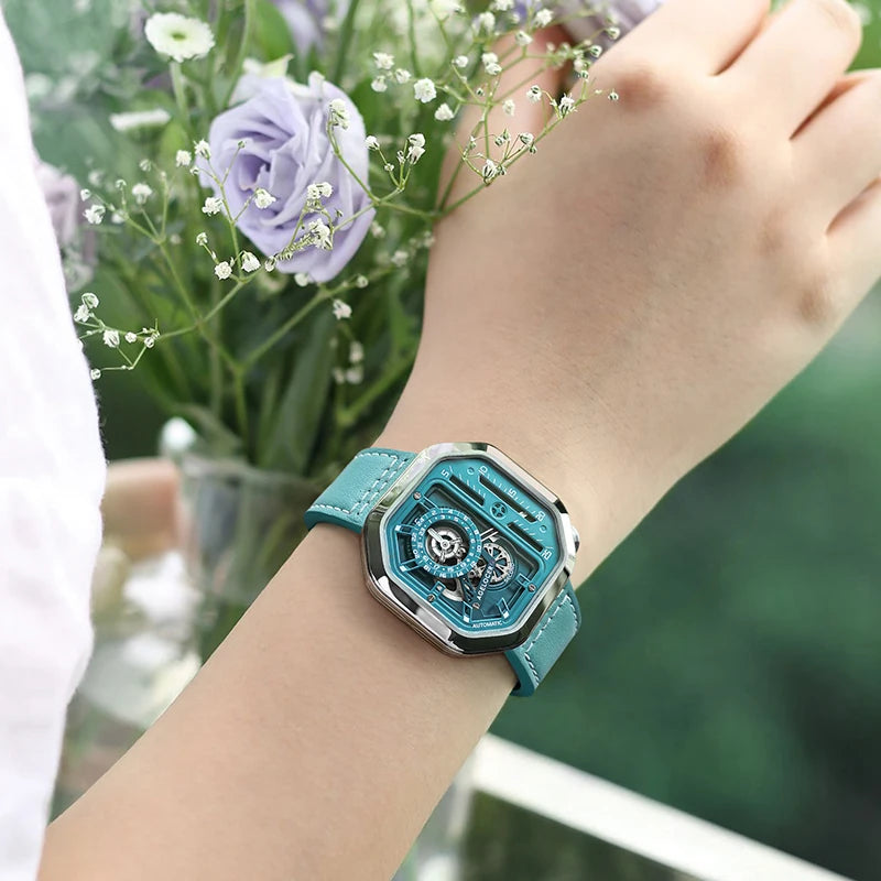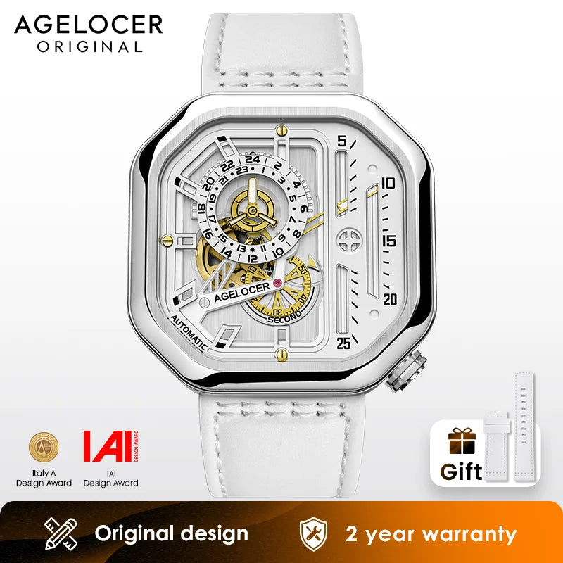 AGELOCER Original Racing Watch Women's Square Luxurious Hollow Big Dial Automatic Mechanical Watch Birthday Gift for Women