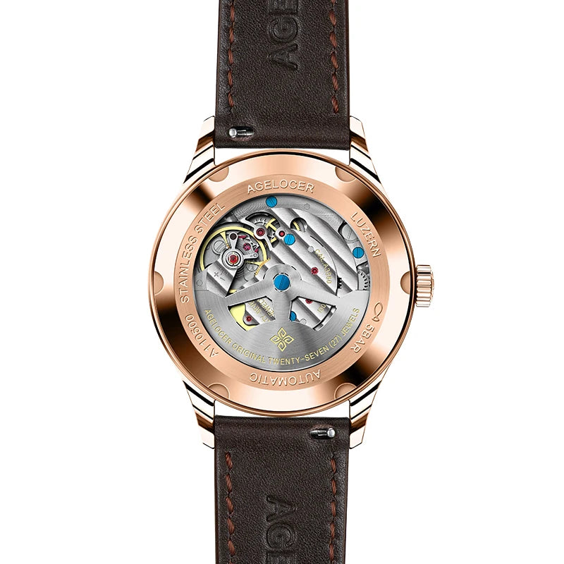 AGELOCER Mechanical Men's Watches Luminous Transparent Caseback Date 50m Waterproof Power Reserve Clock Men Wrist Watch