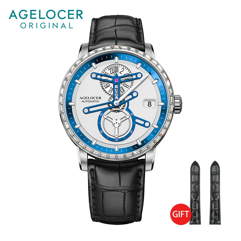 AGELOCER Original Racing Watch Ladies Luxury Skeleton Big Dial Automatic Mechanical Watch Birthday Gift for Women