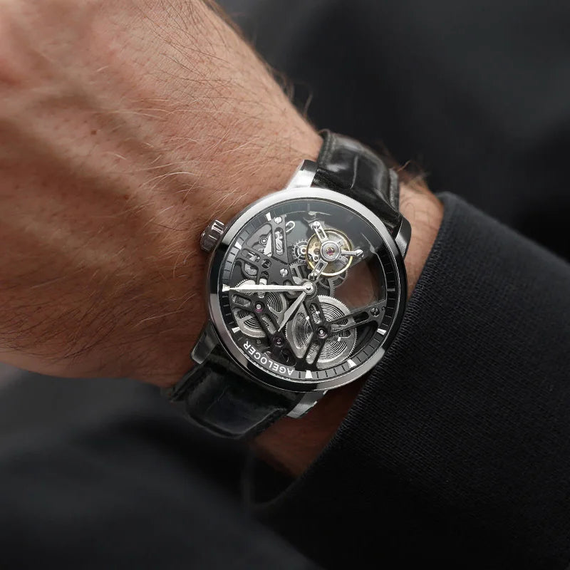 AGELOCER Original Tourbillon Watch Men's Business Formal Luxury Skeleton Manual Mechanical Watch Birthday Gift for Men