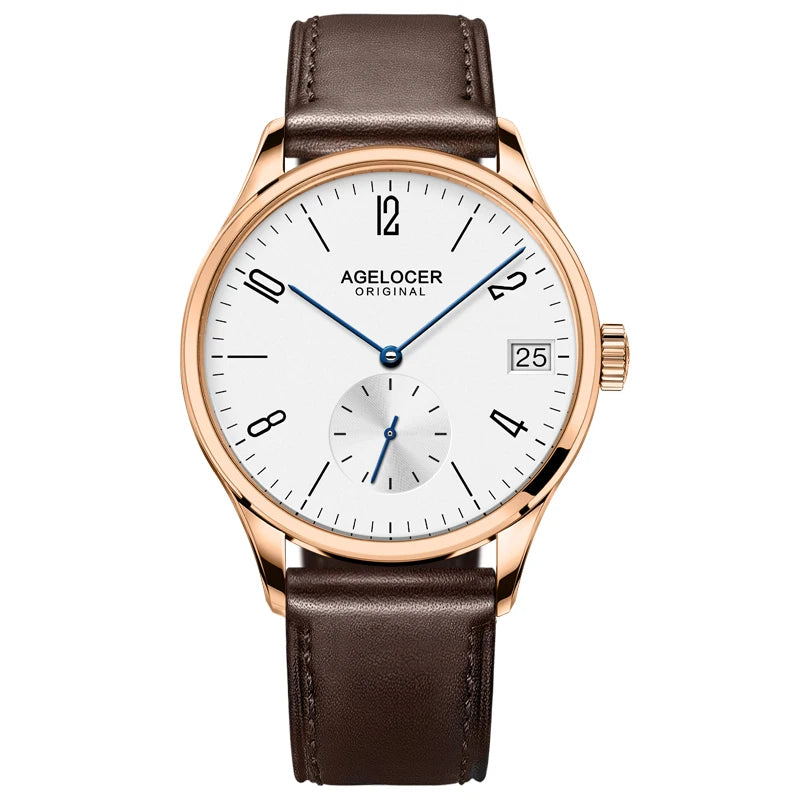 AGELCOER Antique Mechanical Watch Men Rose Gold plated Wristwatch Men Top Brand Luxury Date Male Clock Dive 50m For Water Sports