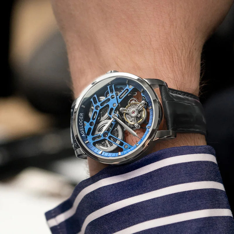 AGELOCER Original Tourbillon Watch Fashion Men's Business Formal Luxury Skeleton Manual Mechanical Watch Birthday Gift for Men