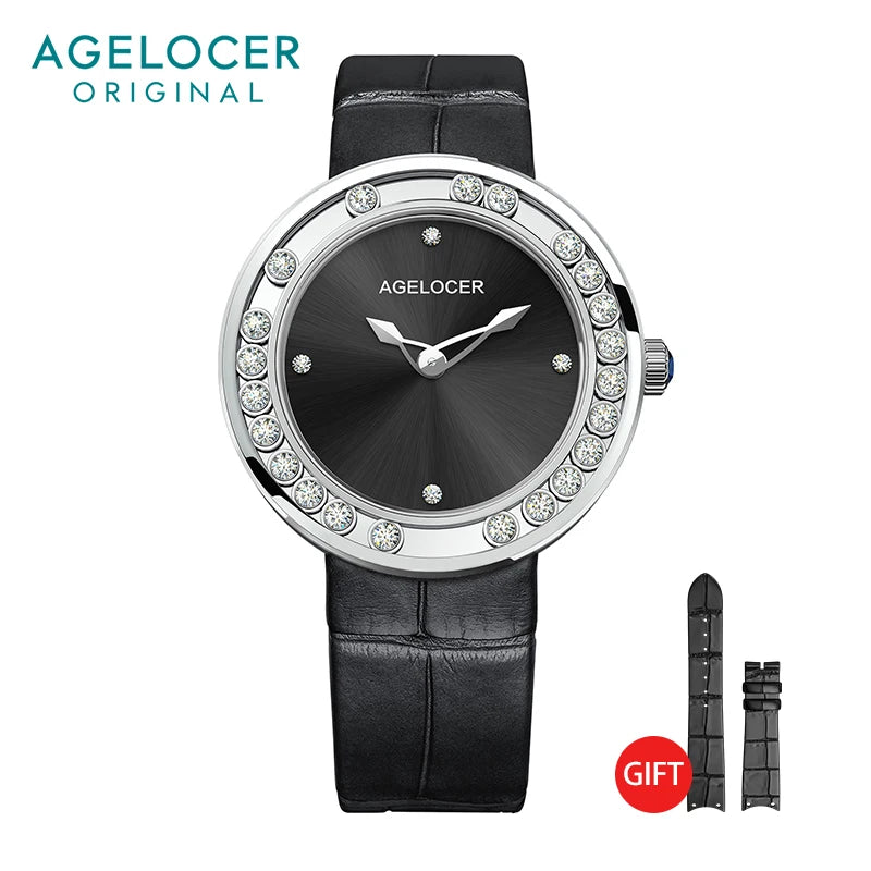 AGELOCER Women's Watches Fashion Luxury Top Brand Diamond Black Women Wristwatch Sapphire Casual Ladies Quartz Watch Clock New