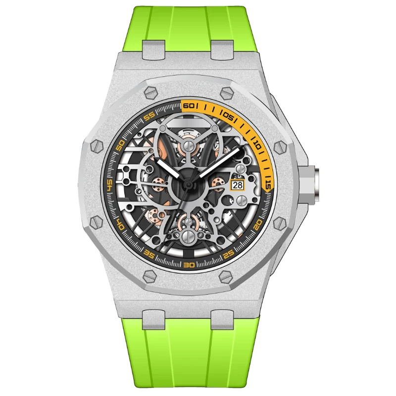Baogela luxury Men watches quartz watch Green silicone skeleton sport date waterproof luminous multifunction men's quartz watch