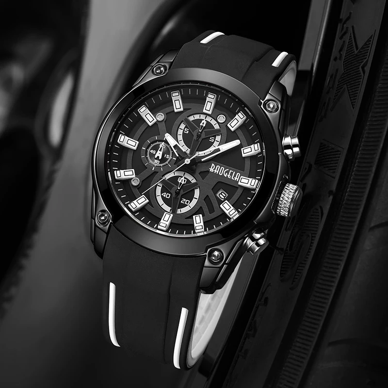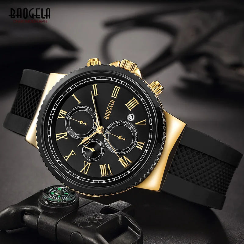 Baogela chronograph watch top brand luxury luminous silicone quartz wrist watches military sports wristwatch for man 1606