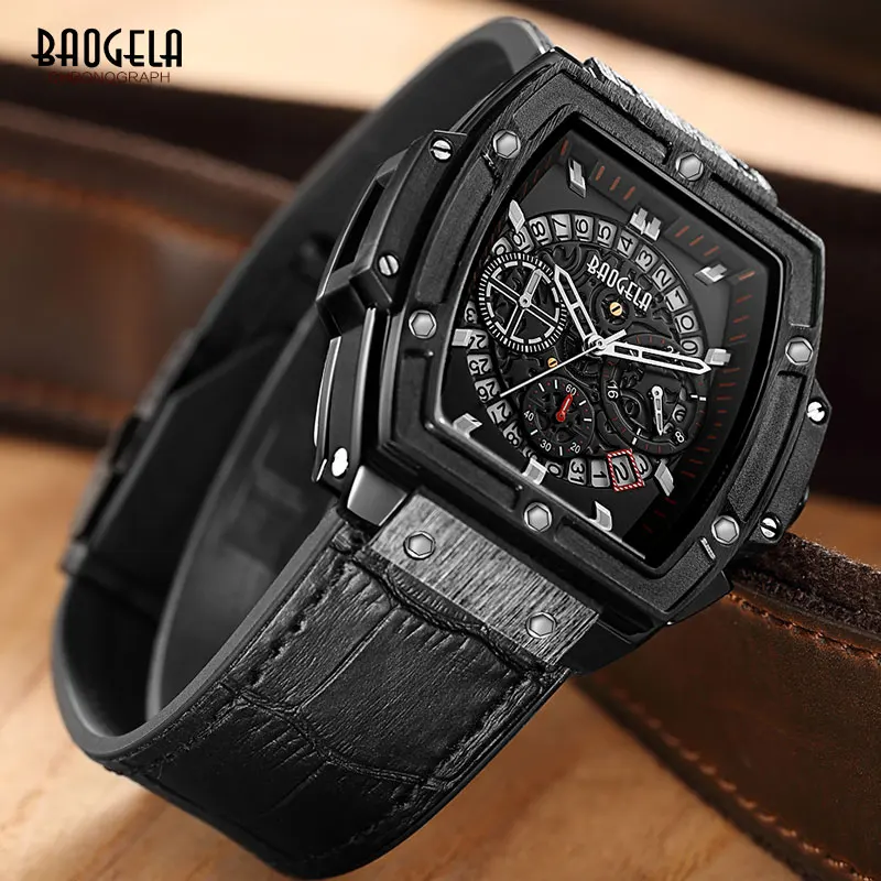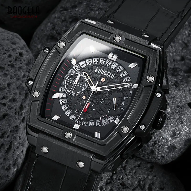 BAOGELA Men Business Watches Quartz Sport Casual Genuine Rubber Band WristWatch Waterproof Male Clock Relogio Masculino Gift