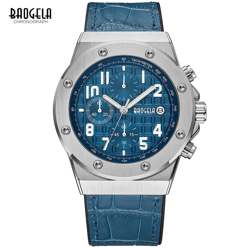 BAOGELA Men's New Quartz Watches 2019 Waterproof Chronograph Casual Luminous Wrist Watch Man Leather Strap Relogios 1805 Blue