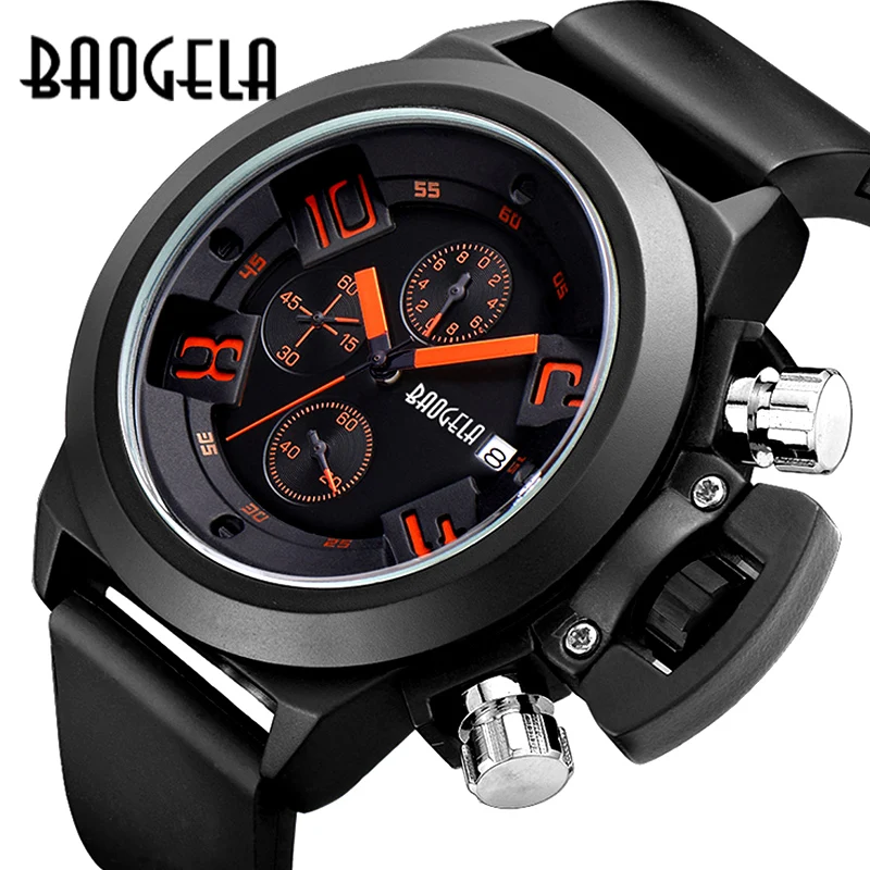 BAOGELA Relogio Fashion Quartz Watch Man Luminous Silicone Watches Men Hot Calendar Wristwatch For Male Chronograph Sport Hour