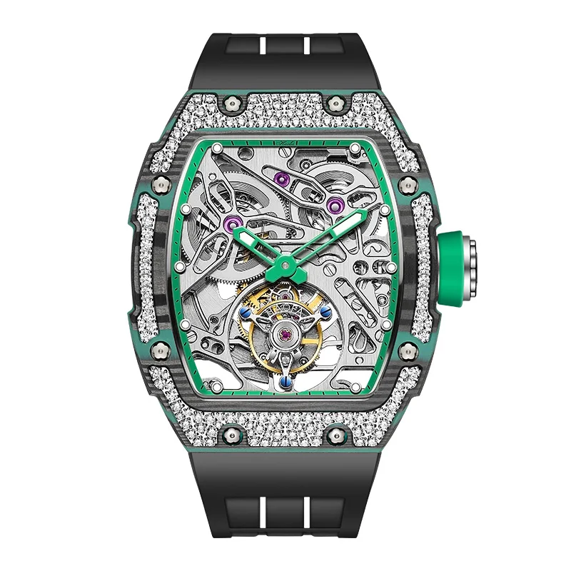 Haofa Automatic Tourbillon Watch Luxury Carbon Fiber Diamond Case Skeleton Mechanical Watch Sapphire Waterproof Luminous 1901-3