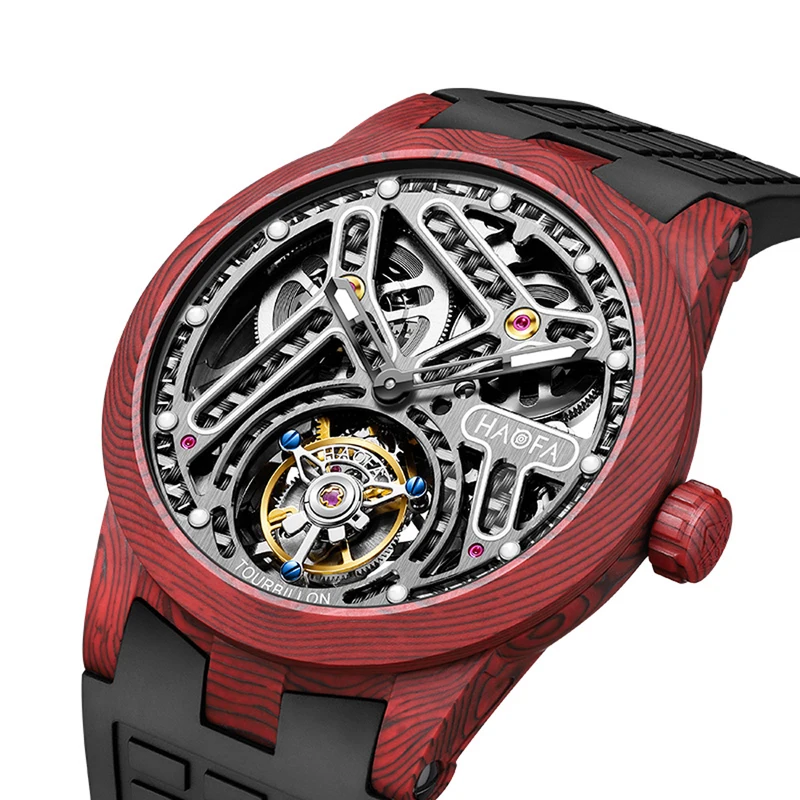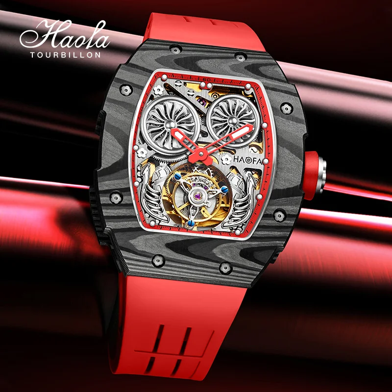 Haofa carbon fiber flying tourbillon watch hollow automatic luxury mechanical watch Sapphire waterproof watch for men 2330