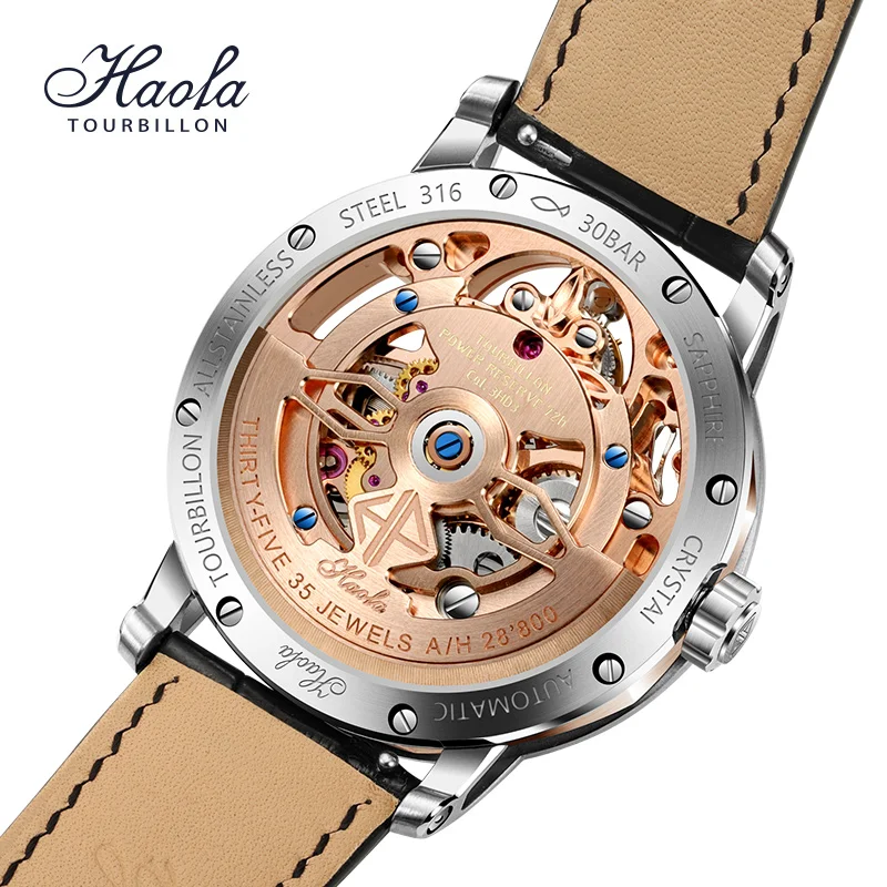 Haofa Hollow Automatic Tourbillon Movement Watches Men Skeleton Sapphire Self-Wind Mechanical Watch for Men Business Casual 1930
