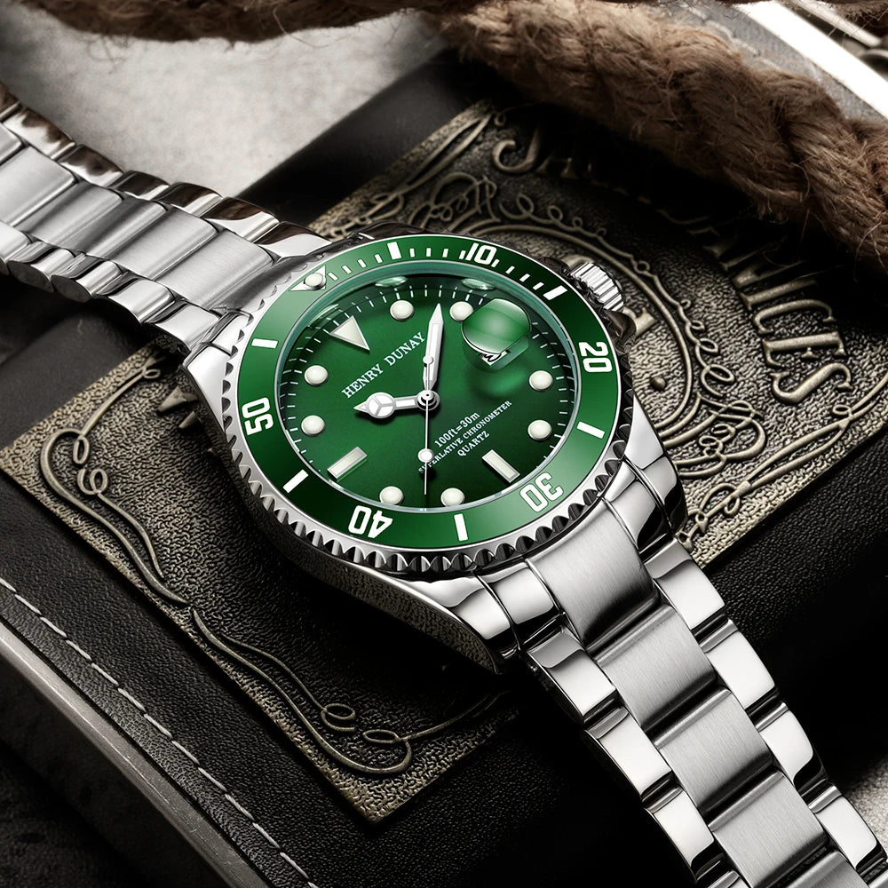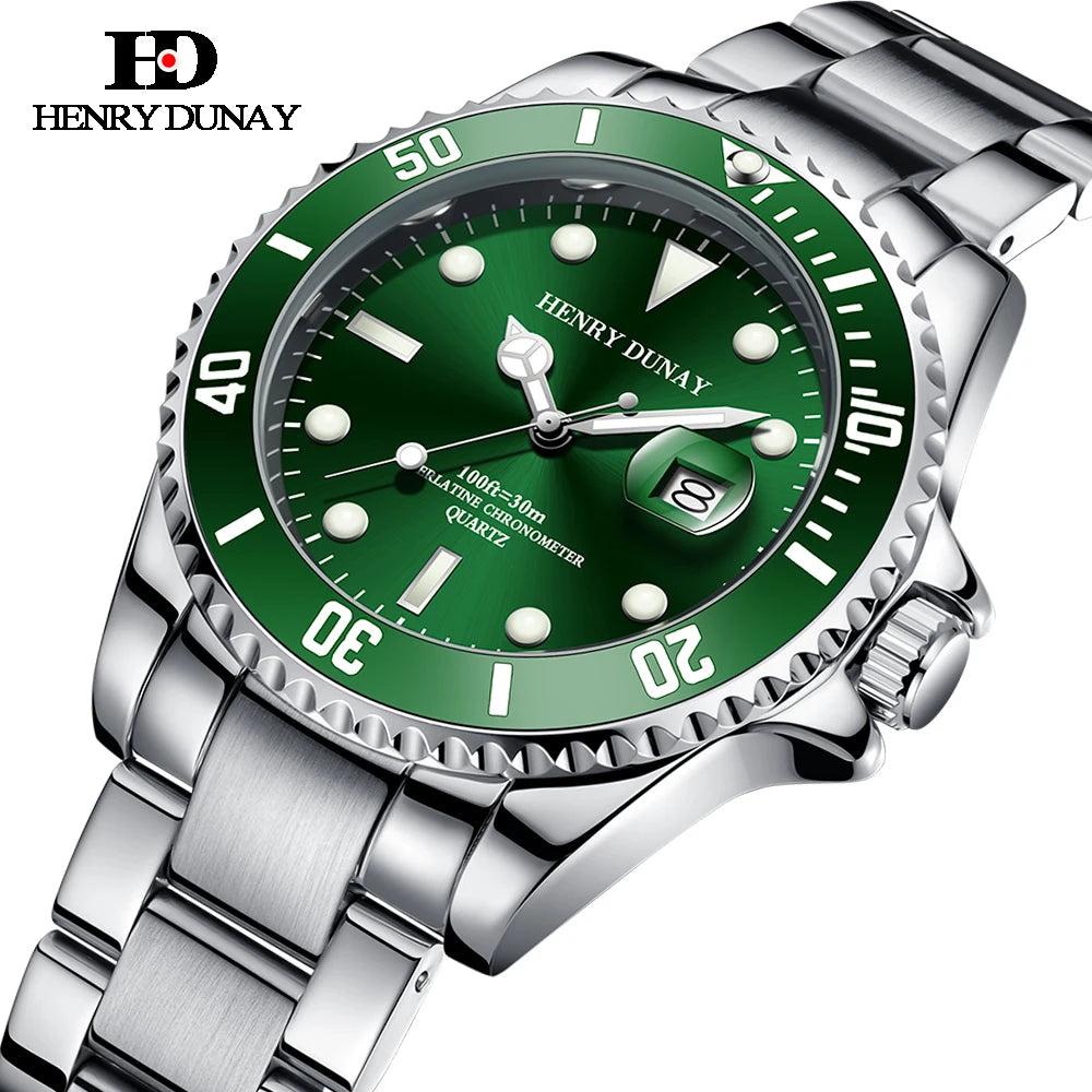 2020 HENRY DUNAY New Fashion Mens Watches Top Brand Luxury Big Dial Quartz Stainless Steel Watch Waterproof Sport Chronograph