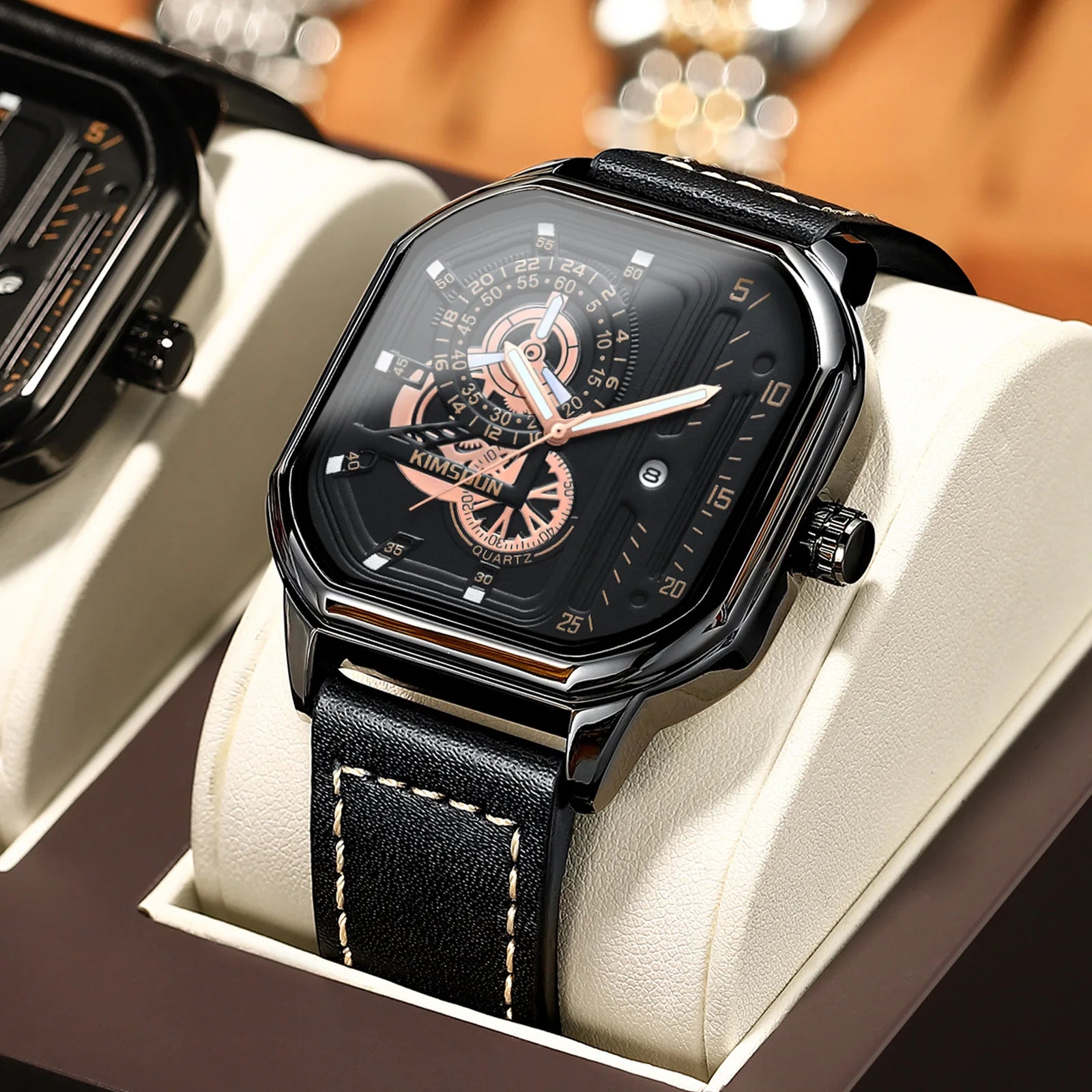 Fashion Luxury Brand KIMSDUN Watches Men Unique Design Tonneau Case Waterproof Auto Date Luminous Quartz Wristwatch Dropshipping
