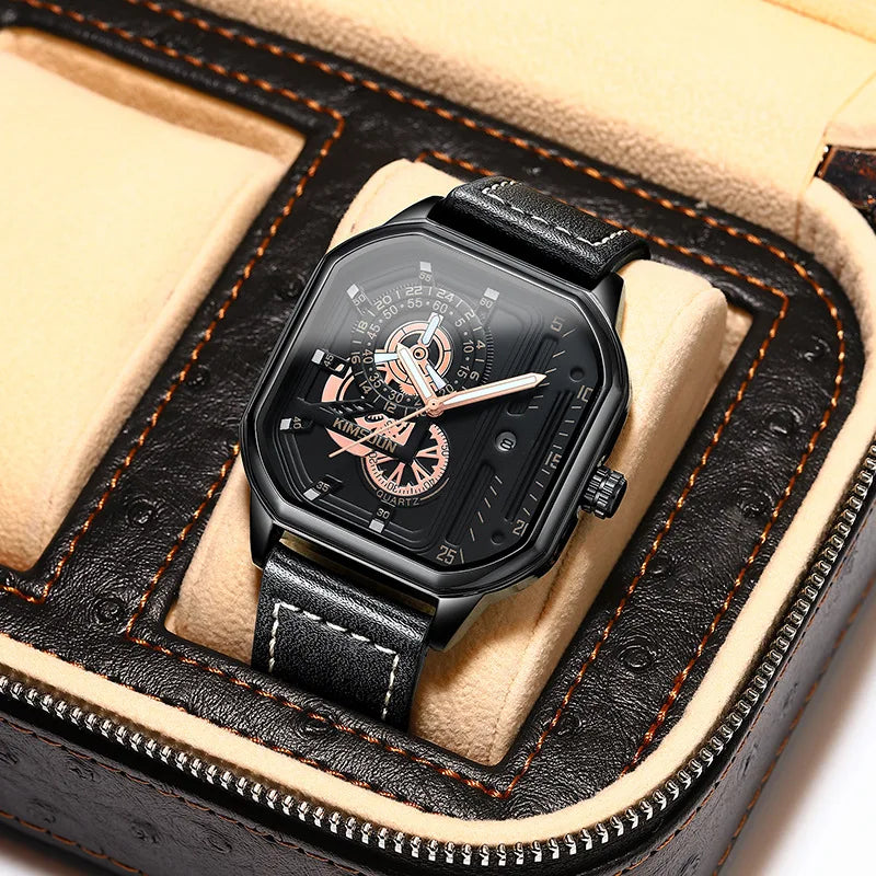 Fashion Brand KIMSDUN Men Watch Unique Design Luxury Tonneau Case Waterproof Auto Date Luminous Quartz Man Wristwatches Hot Sale
