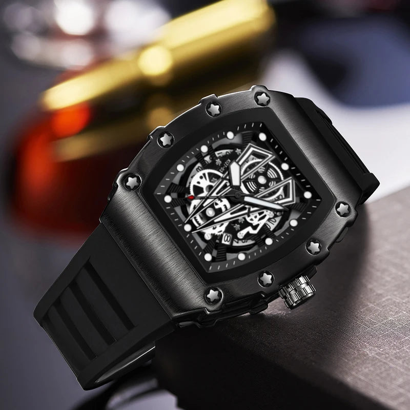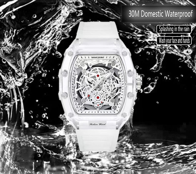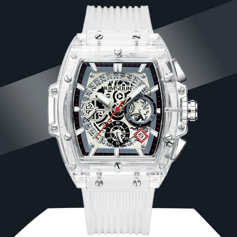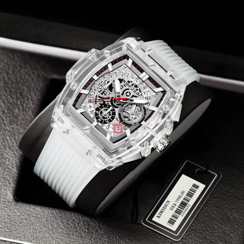 KIMSDUN Tonneau Men Sports Watch Military Silicone Strap Clock Relogio Masculine Transparent Multifunctional Quartz Wristwatch