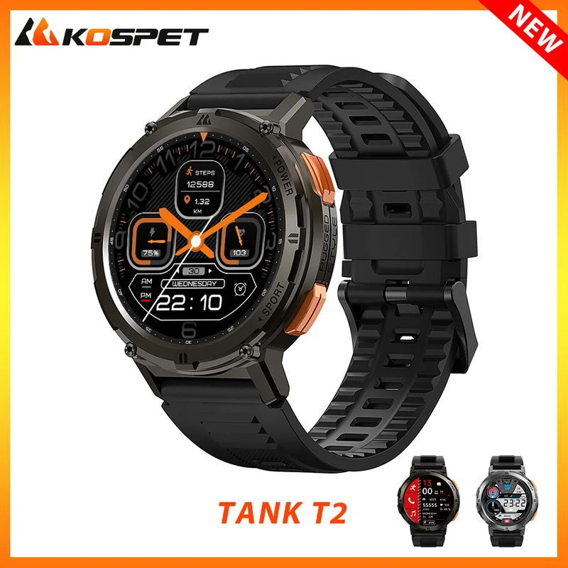 Kospet tank T2 AMOLED AOD smartwatch ultra for men smart watch fitness electronic Bluetooth call 5ATM waterproof mens watches