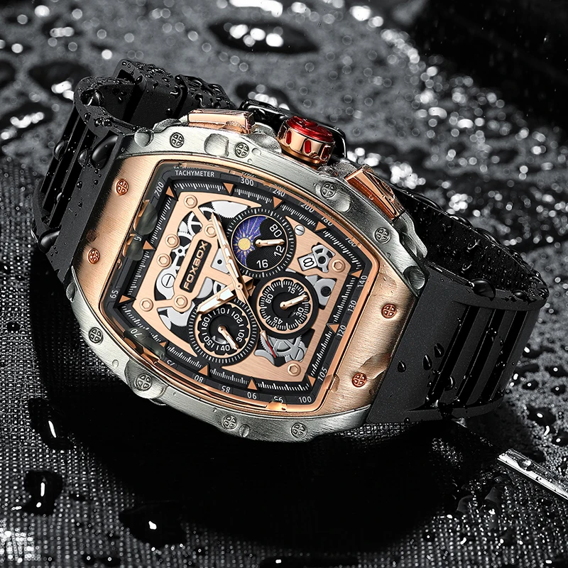 LIGE Mens Watches FOXBOX Top Brand Luxury Military Waterproof Quartz Watch For Men Silicone Sport Square Chronograph Wristwatch
