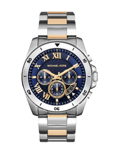 Michael Kors Brecken Chronograph Blue Dial Two Tone Steel Strap Watch For Men - MK8437