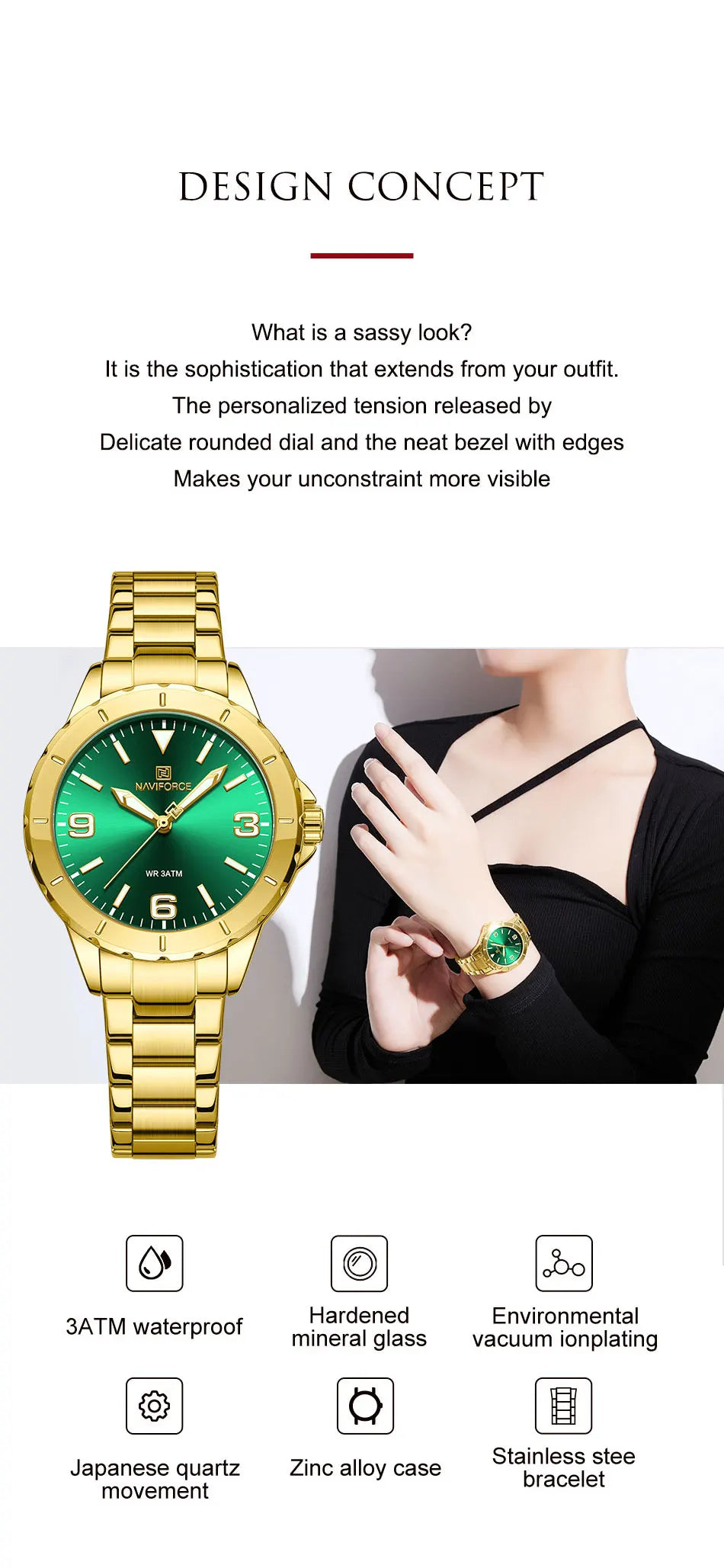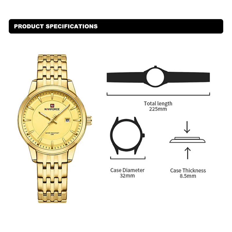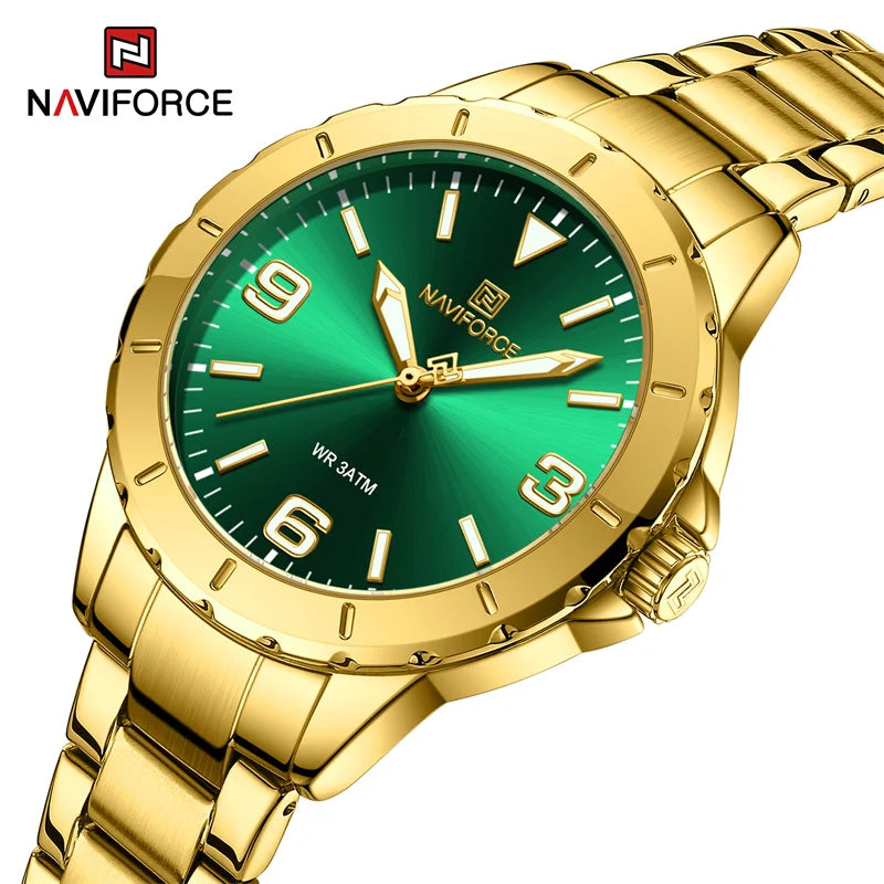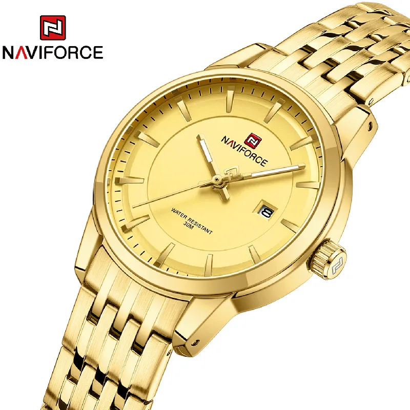 NAVIFORCE Golden Quartz Watch Simple Luxury Wrist Watch Women Stainless Steel Waterproof Female Watches Luminous Ladies Watch