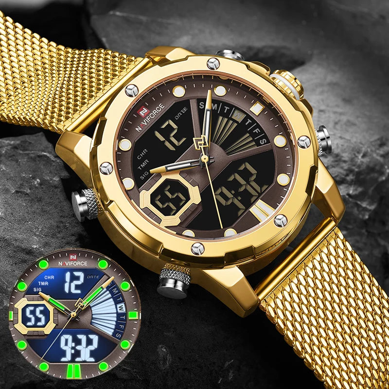 NAVIFORCE Original Watches For Men Luxury Brand Quartz Dual Display Military Sports Wrist Watch Mesh Steel Band Waterproof Clock