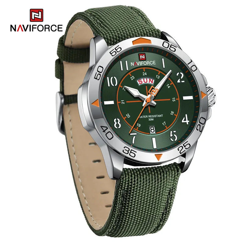 NAVIFORCE Man's Nylon Strap Sport Wristwatch 3ATM Water Resistant Quartz Calendar Clock Casual Fashion Male Watches Reloj Hombre