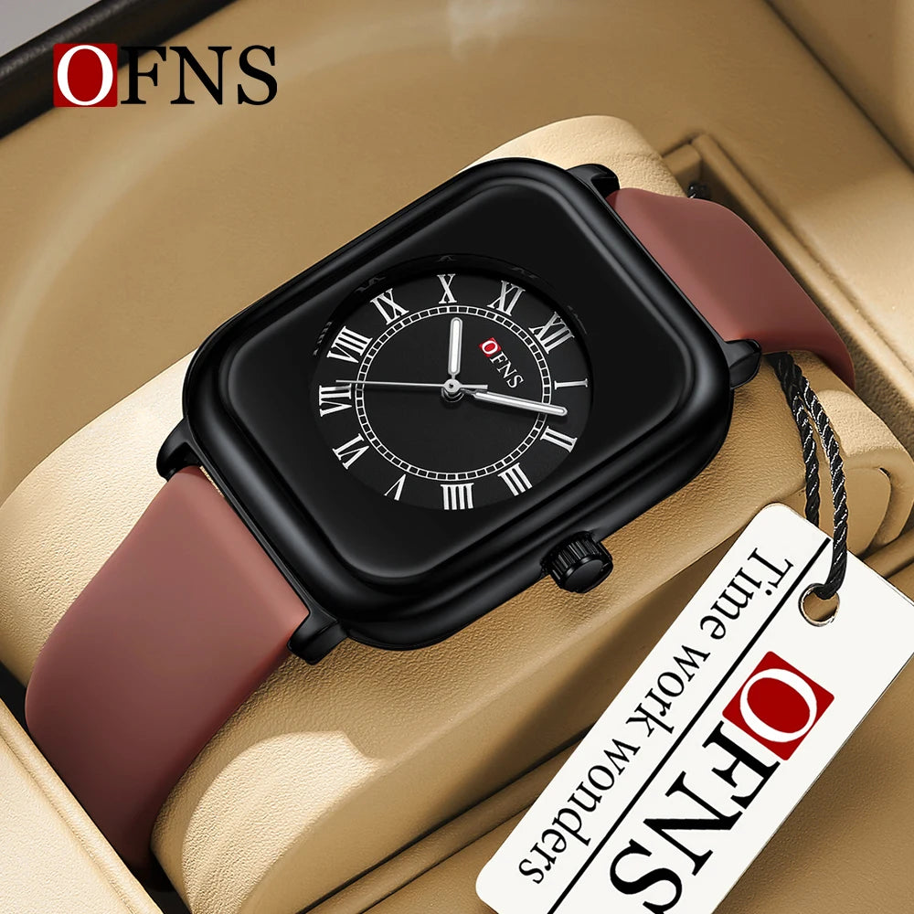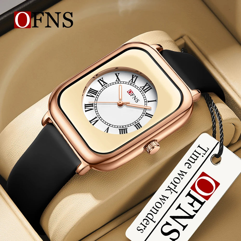 OFNS 1503 New Quartz Watch Unusual Square dial Fashionable Roman scale Two Pin Half Waterproof Women's Watch 2024