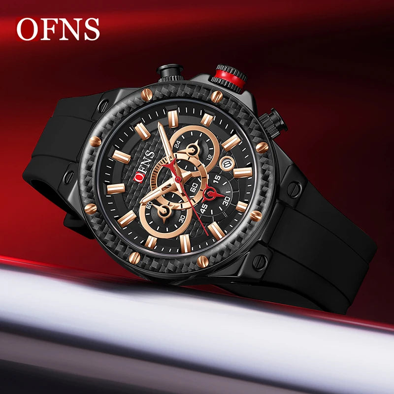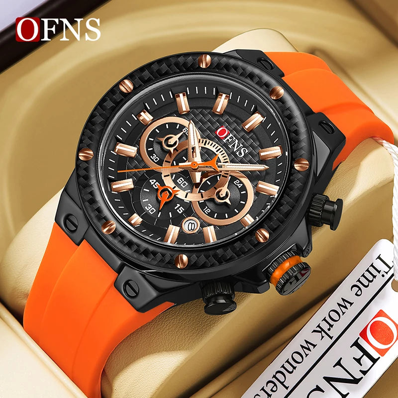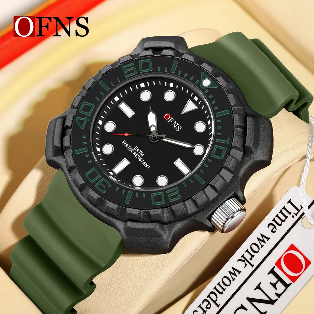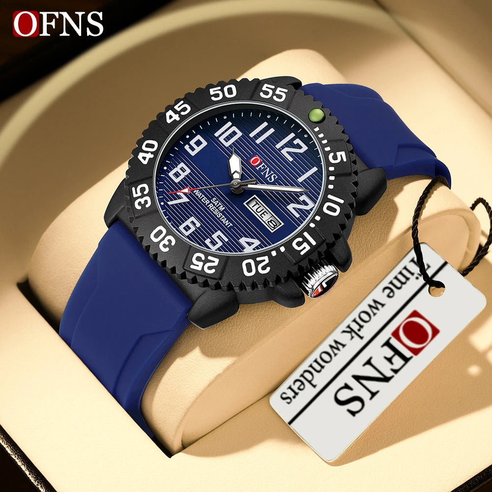 OFNS Watches Mens Quartz Top Brand Luxury Automatic Date Wristwatch for Men Silicone Waterproof Sport Military Chronograph Clock