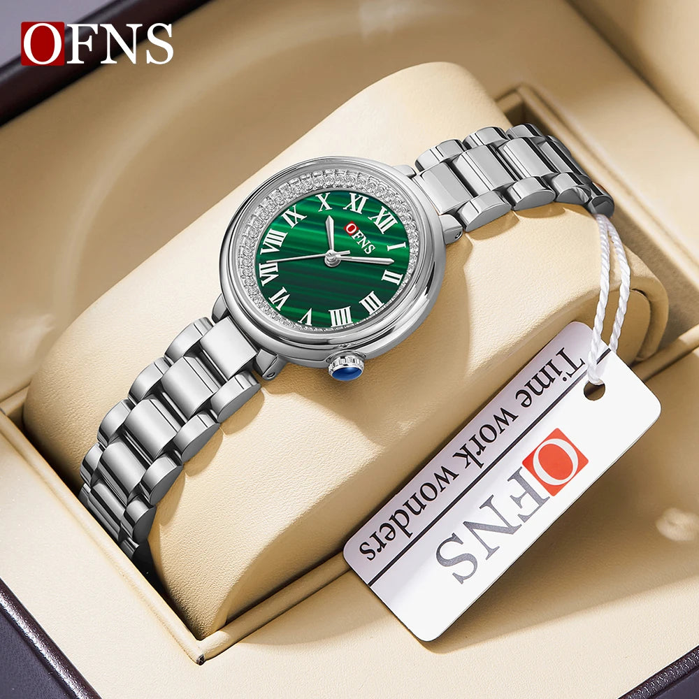 OFNS 1501 High end Brand Women's Watch Steel Band Quartz Set with Diamond Roman Scale Classic Beimu Women's Watches 2024