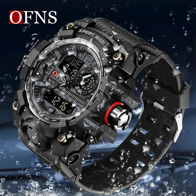 OFNS Top Dual Display Men Watches Waterproof Sports Watch Military Man Alarm Stopwatch Quartz Wristwatch Male Digital Clock