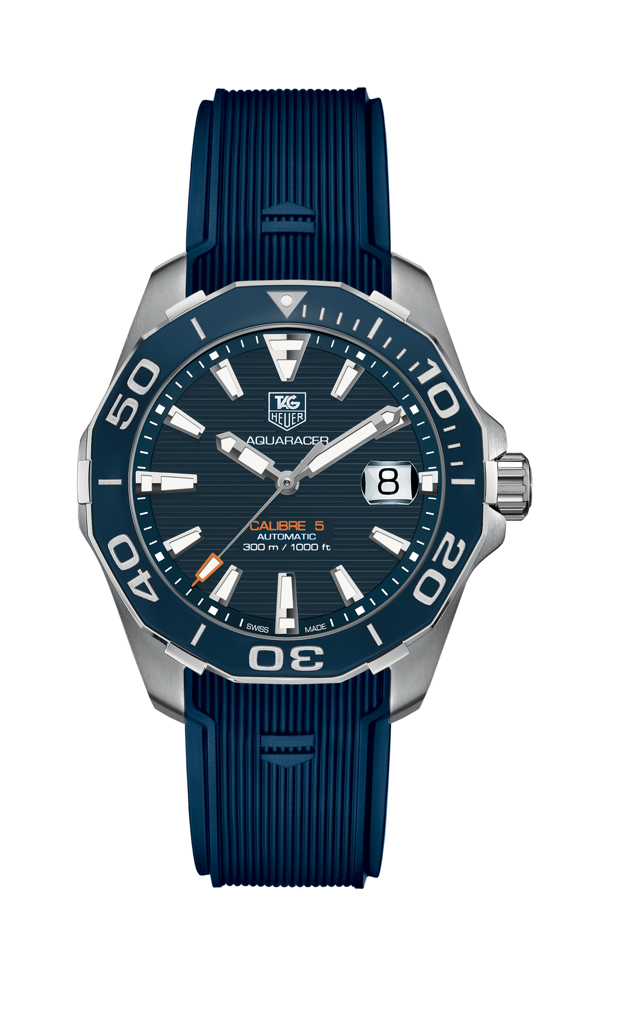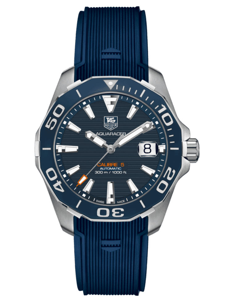 Tag Heuer Aquaracer Calibre 5 Blue Dial Blue Silicone Strap Watch for Men - WAY211C.FT6155