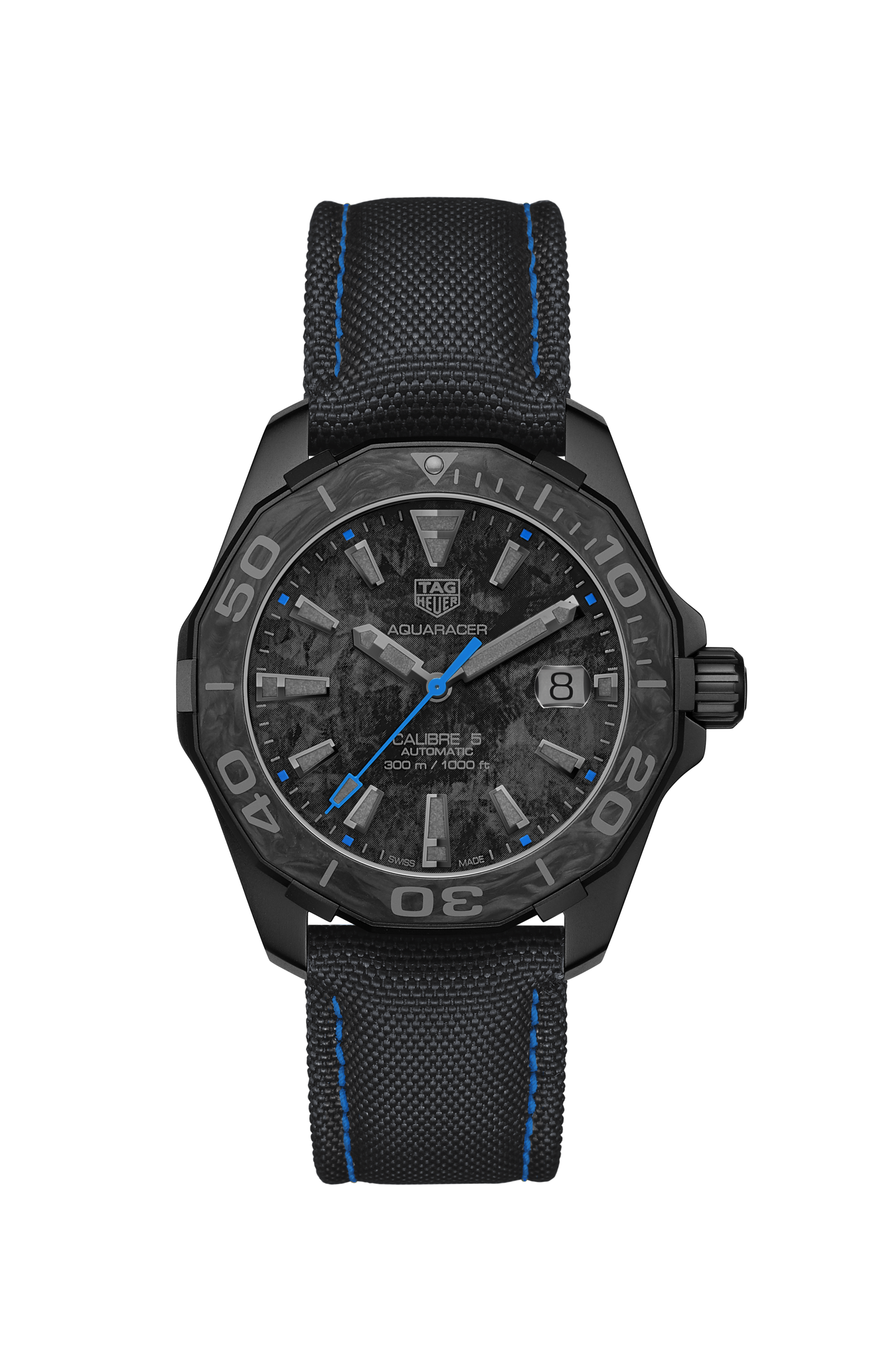 Tag Heuer Aquaracer Calibre 5 Black Nylon Strap Carbon Dial Watch for Men - WBD218C.FC6447
