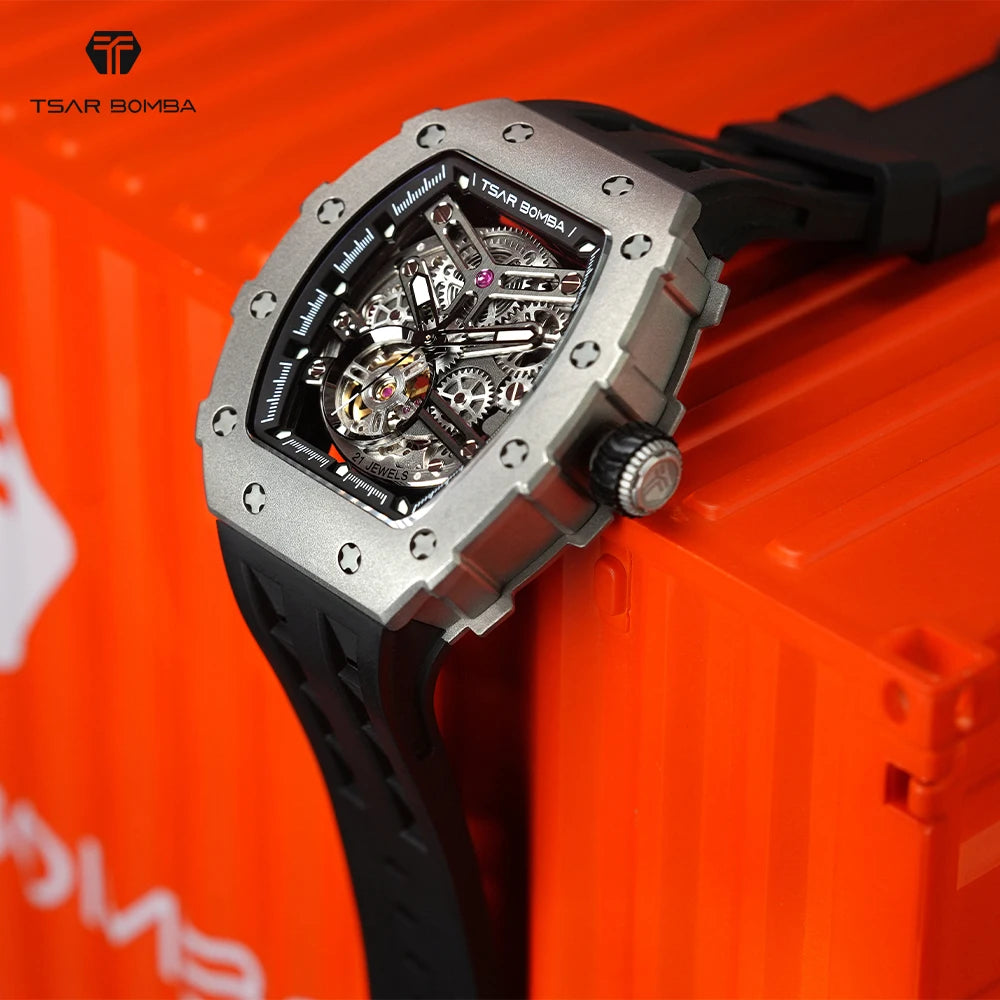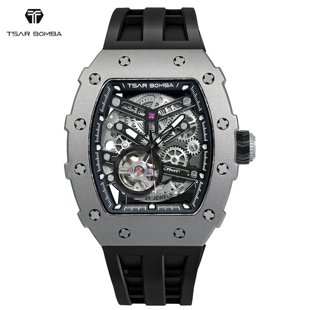 TSAR BOMBA Skeleton Mens Automatic Watches Titanium Mechanical Wristwatch for Men Fashion Waterproof Clock Mens Gifts
