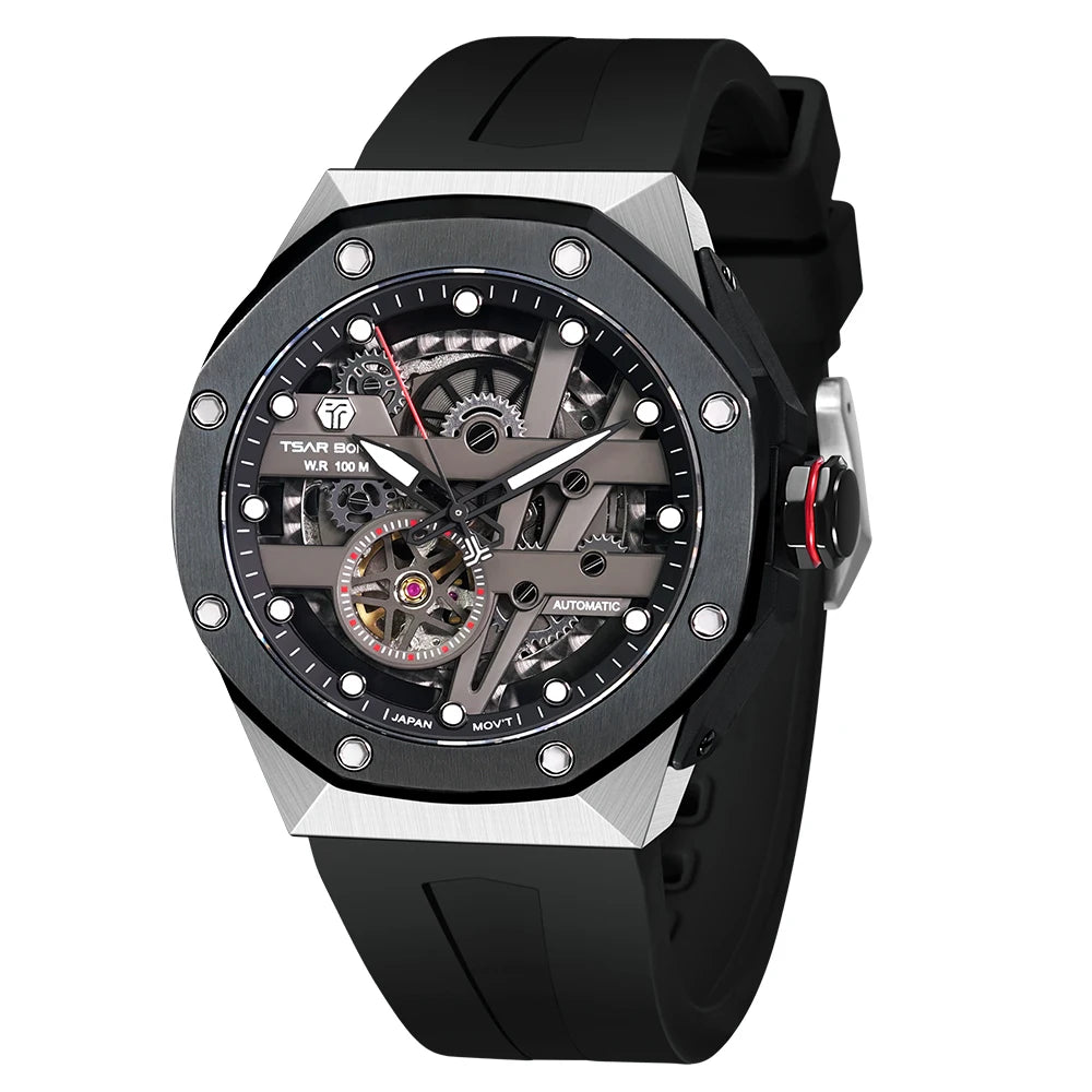 TSAR BOMBA Octagon Mens Automatic Watches Luxury Mechanical Watch Big Dial Water Resistant Sapphire Clock Wristwatch for Men