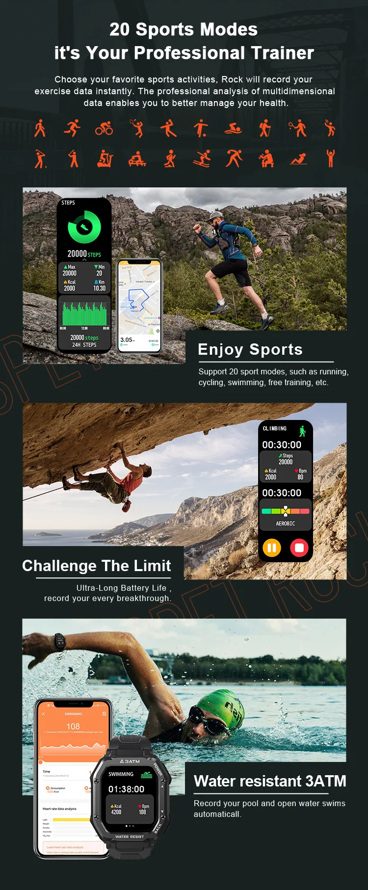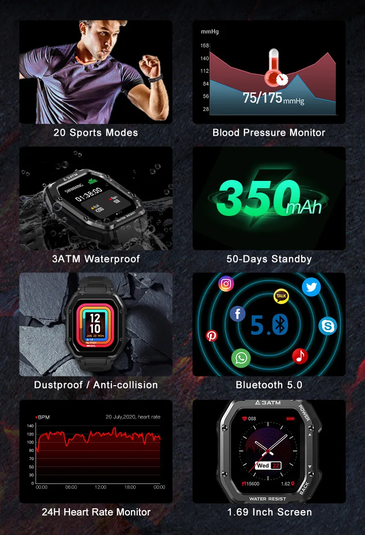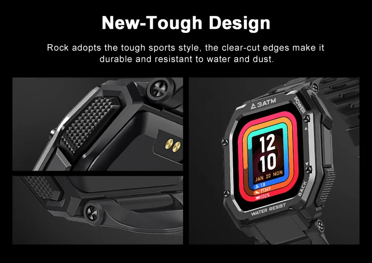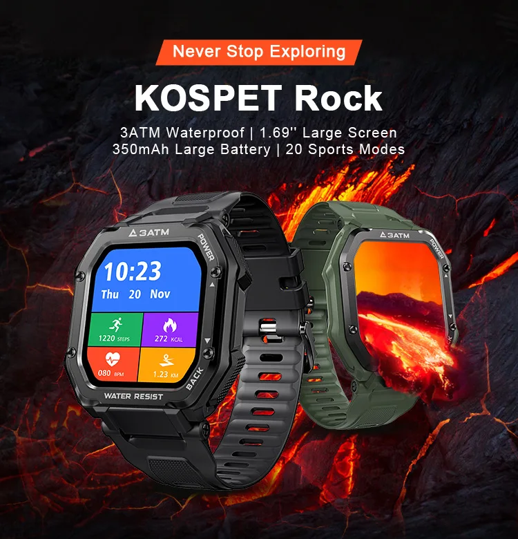 Kospet rock smart watch rugged smartwatch for Men Outdoor Sports 3atm waterproof fitness tracker blood pressure monitor