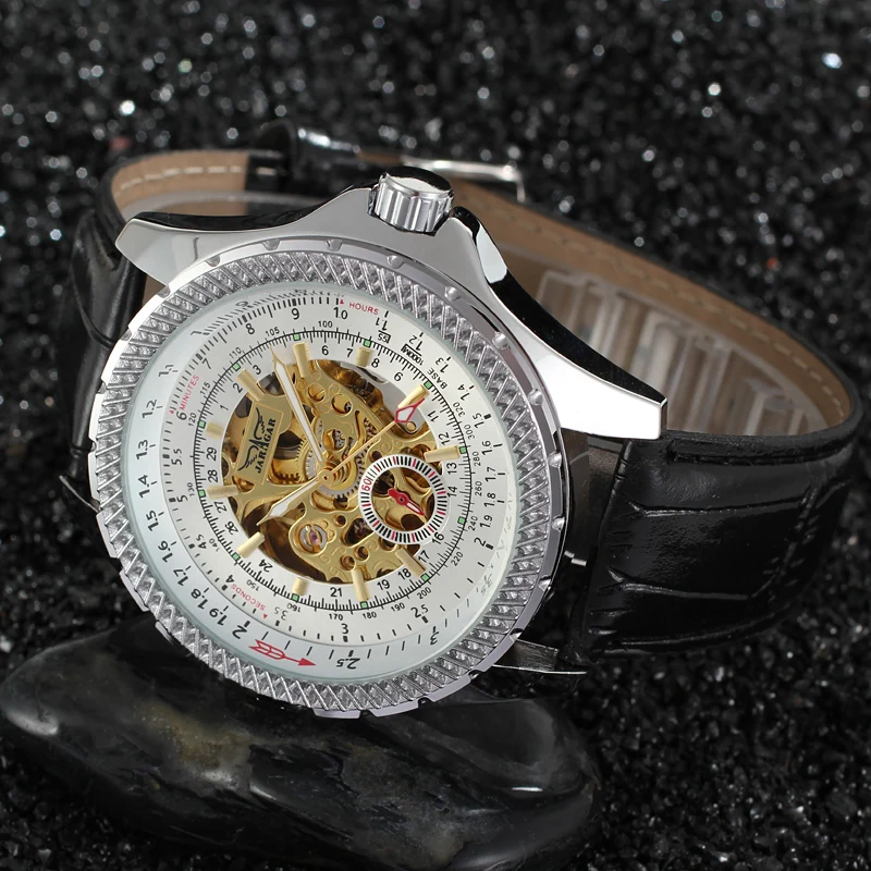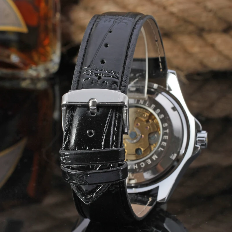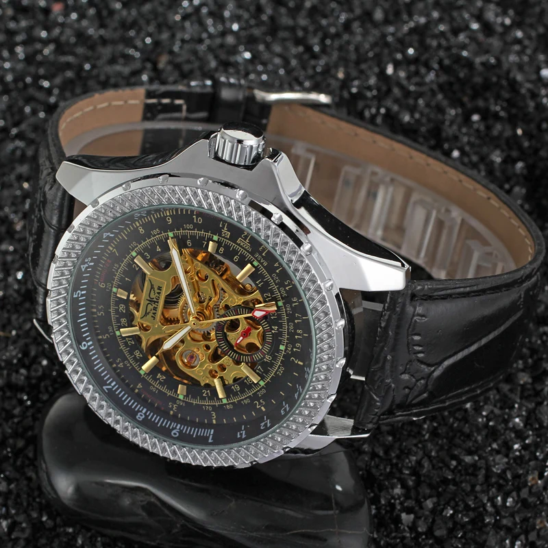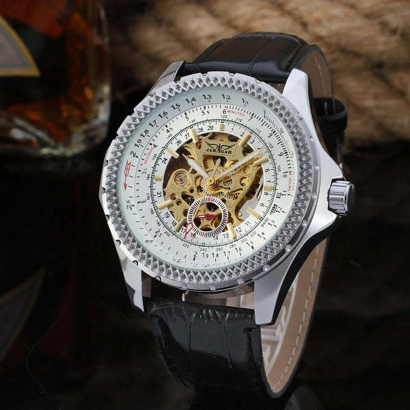 2021 New JARAGAR Classic Men Watch Black Leather Strap Skeleton Mechanical Automatic Business Clock Wristwatch Relogio Masculi