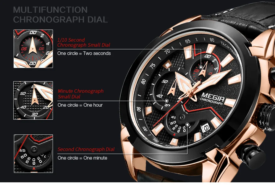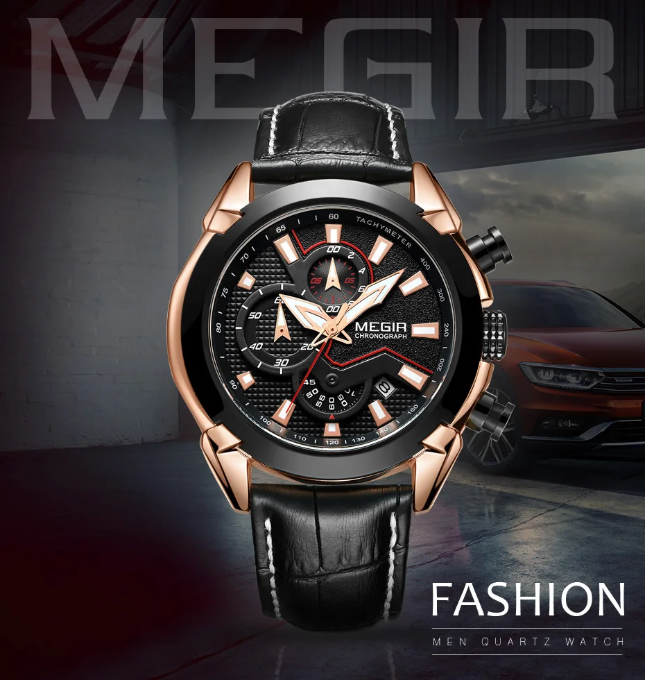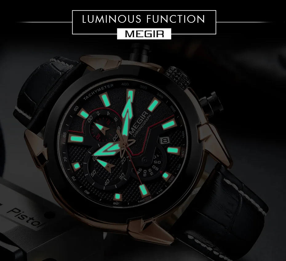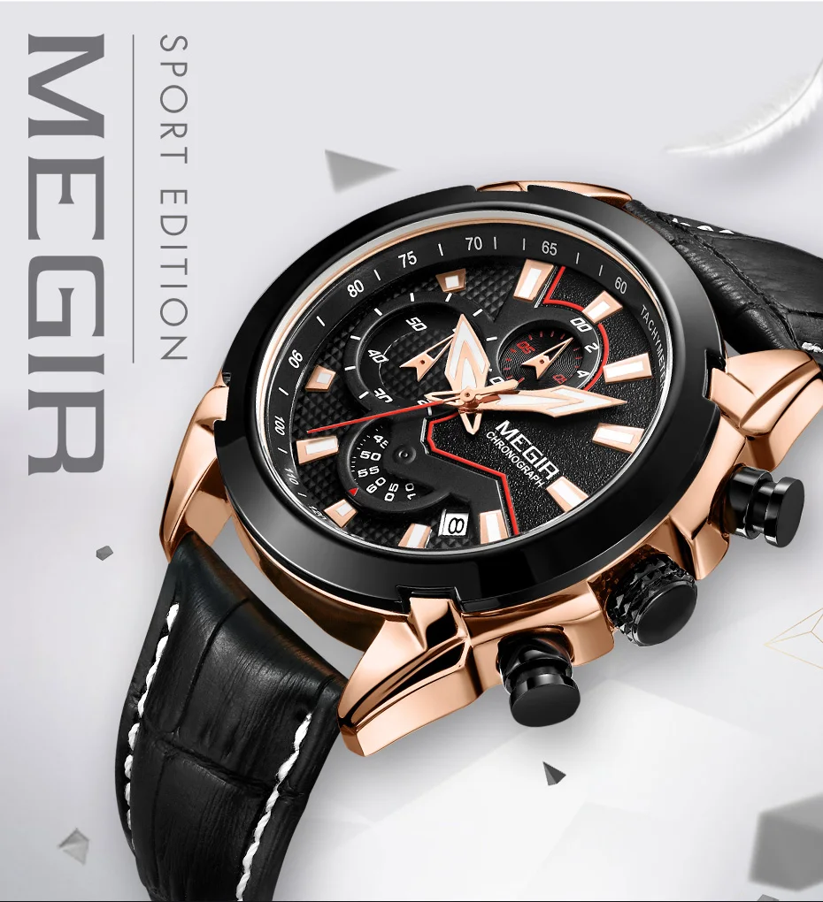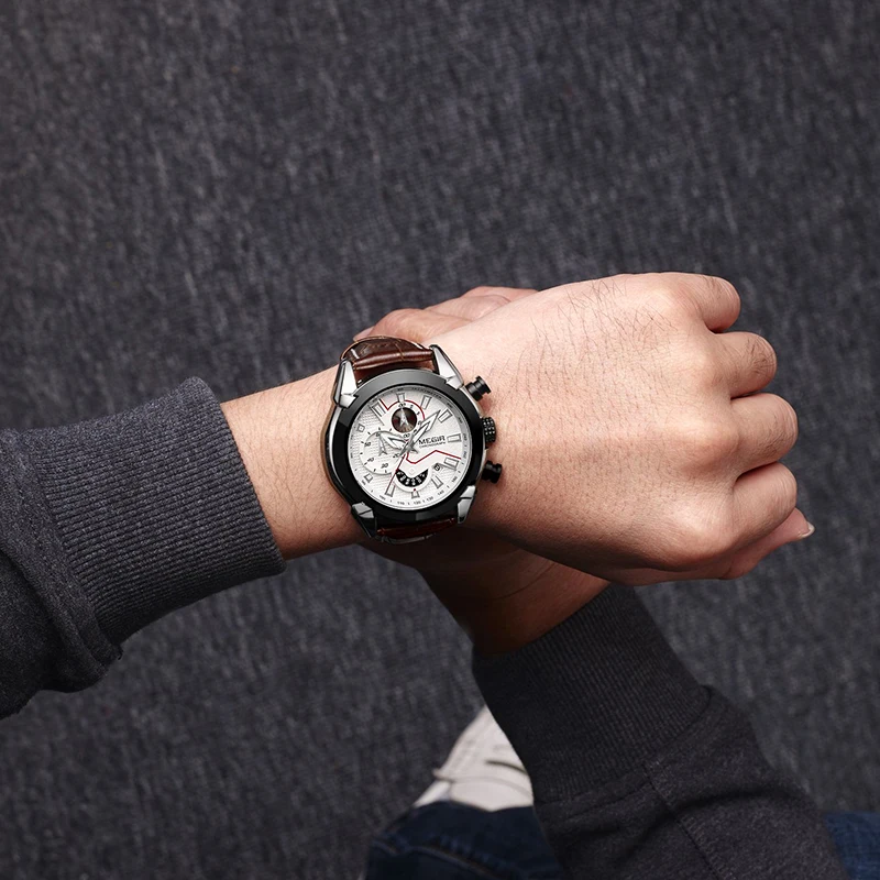 2022 megir 2065 sport watch men top brand leather quartz watches clock men creative Chronograph