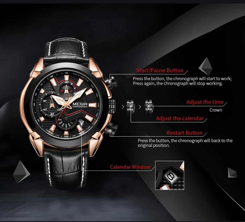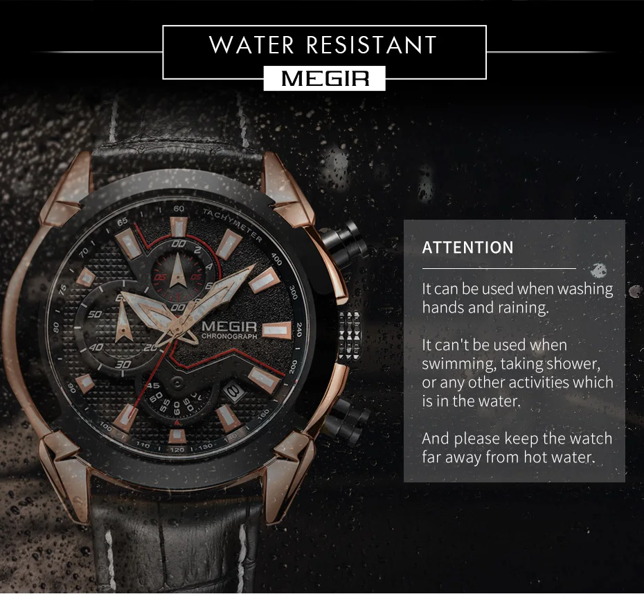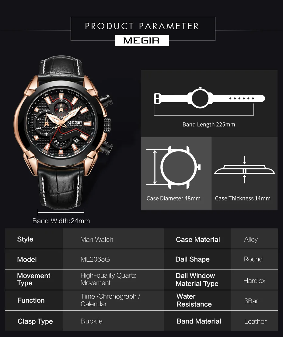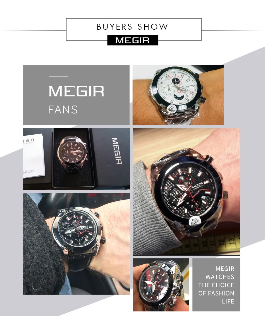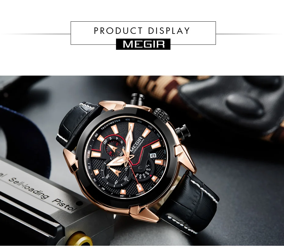2022 megir 2065 sport watch men top brand leather quartz watches clock men creative Chronograph