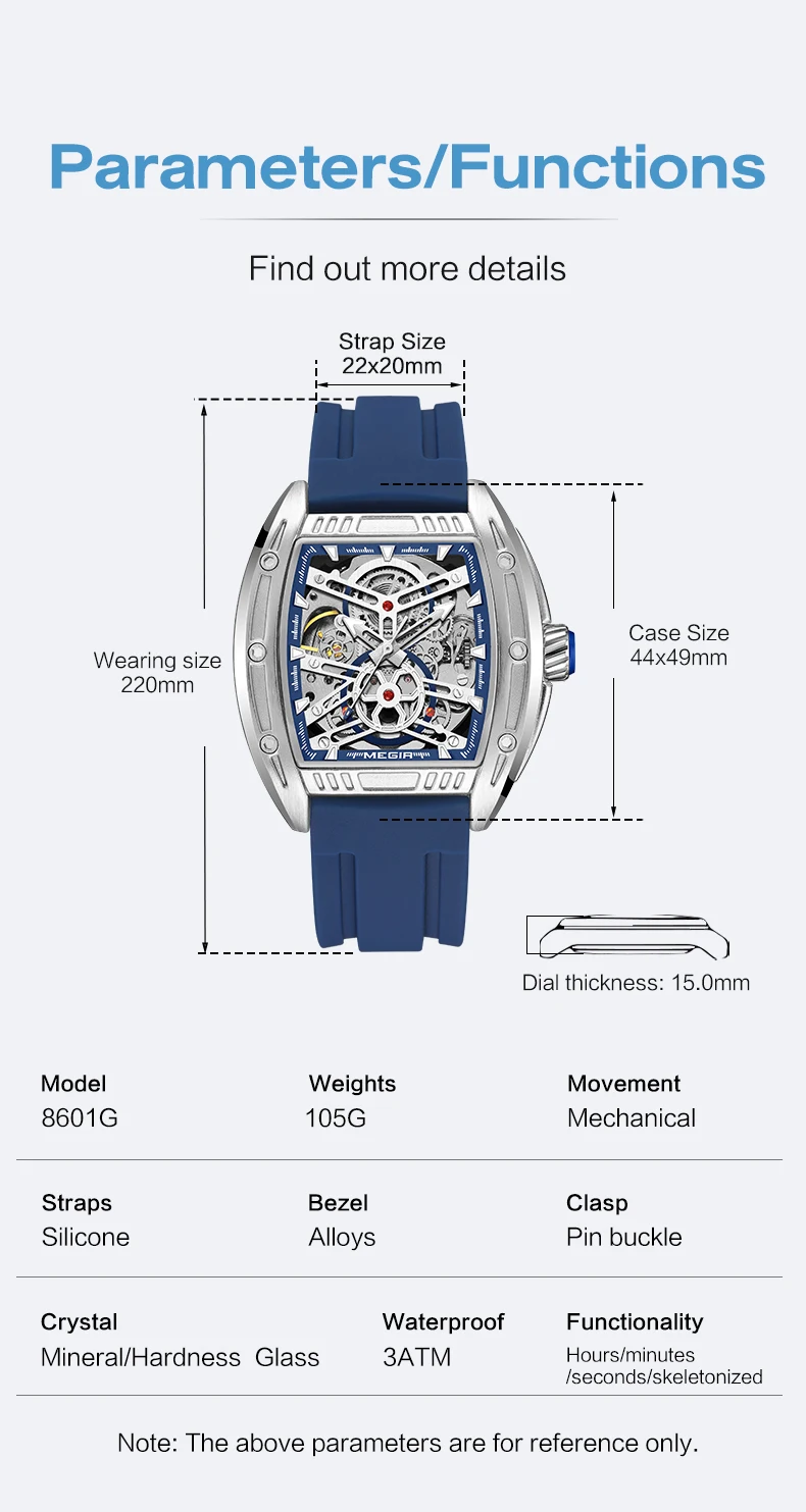 2024 New megir 8601 luxury mechanical watch original brand automatic waterproof glow-in-the-dark multi-functional watch
