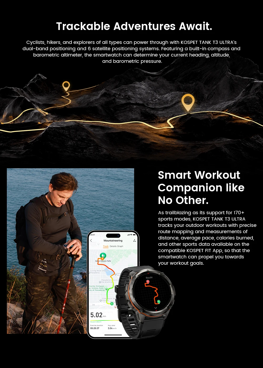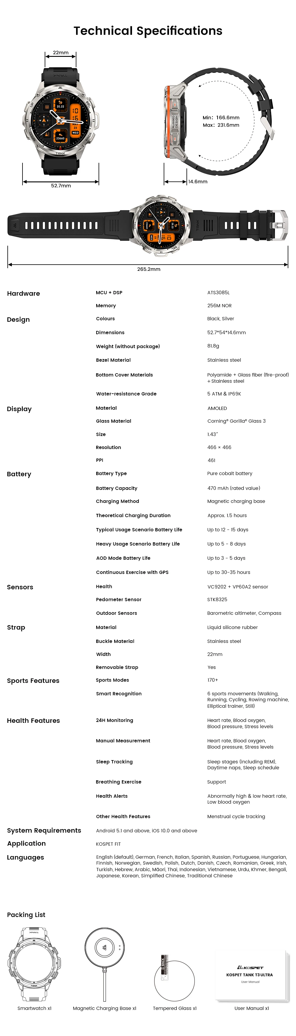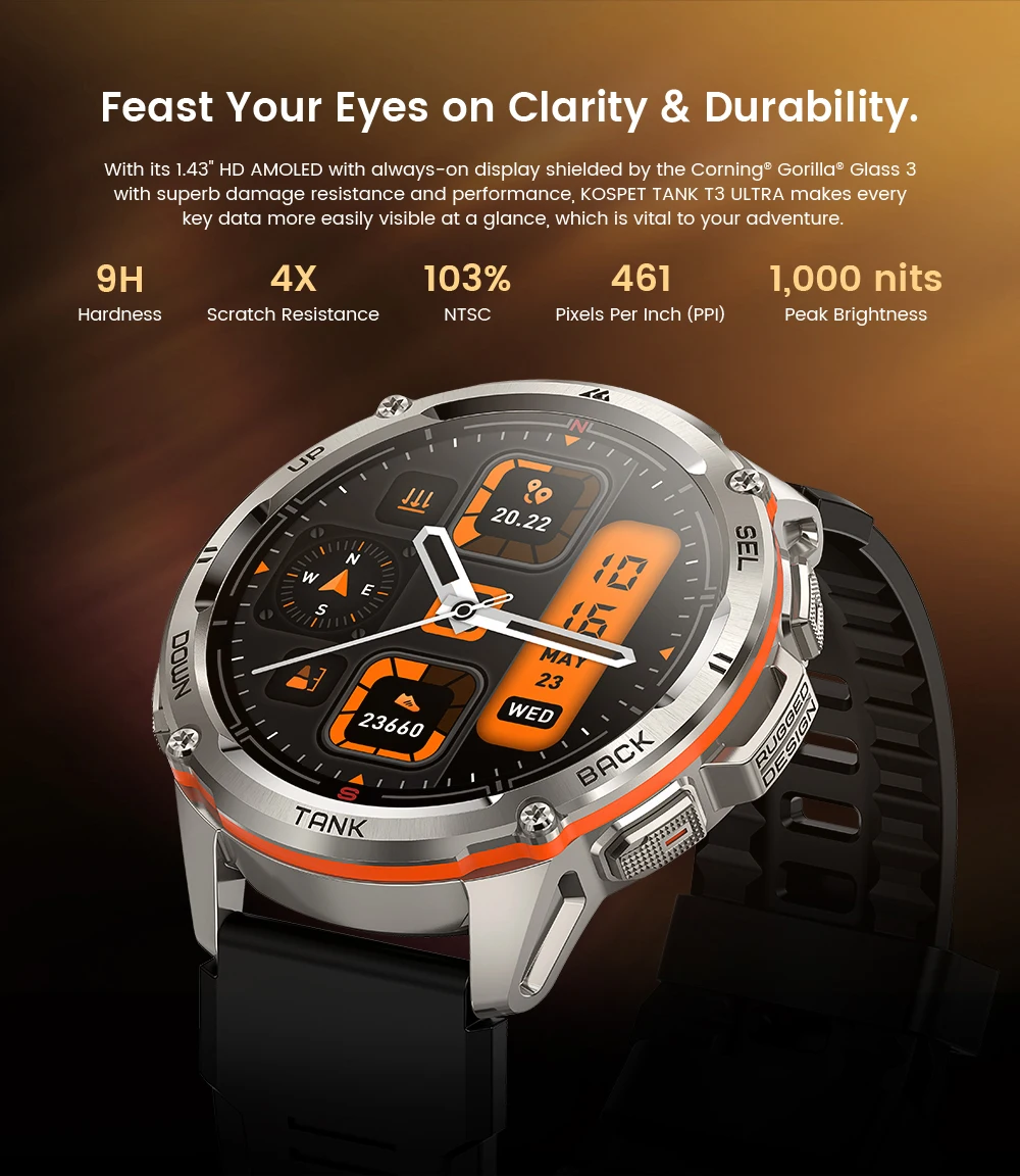2024 original Koppet tank T3 ultra GPS smartwatch mens rugged smart watches women military electronic waterproof digital watch
