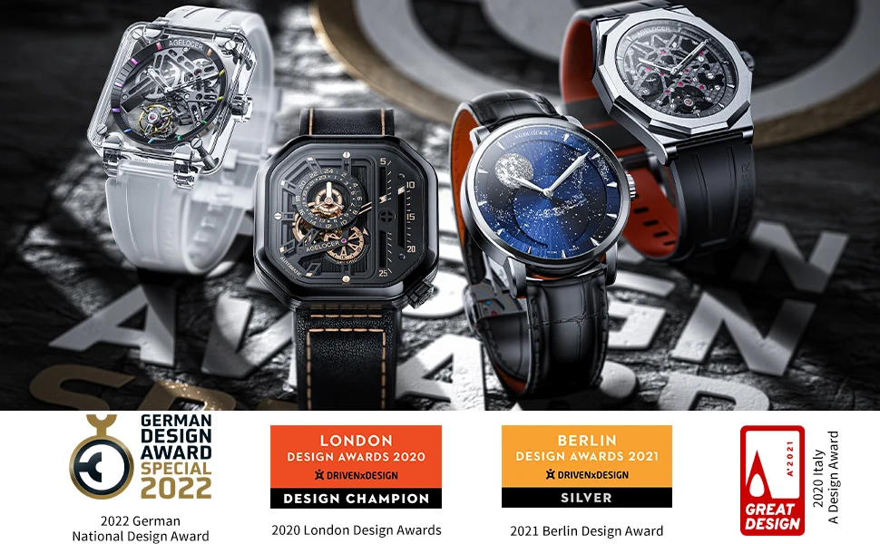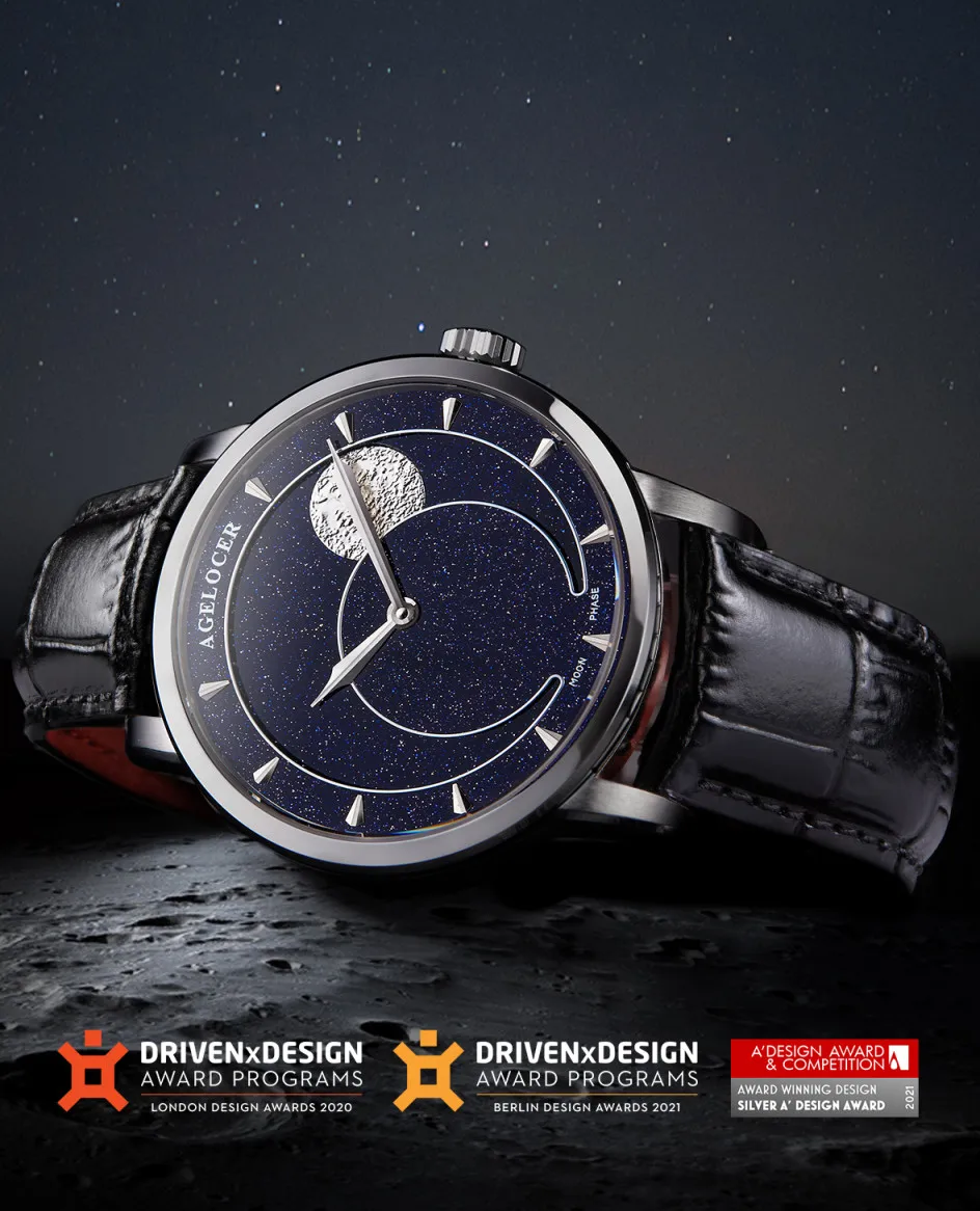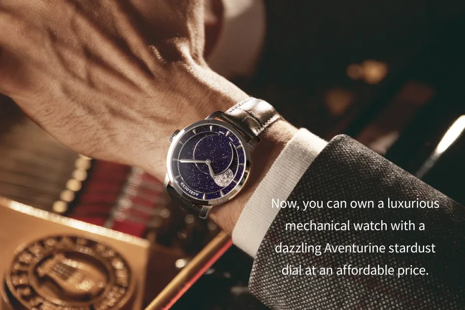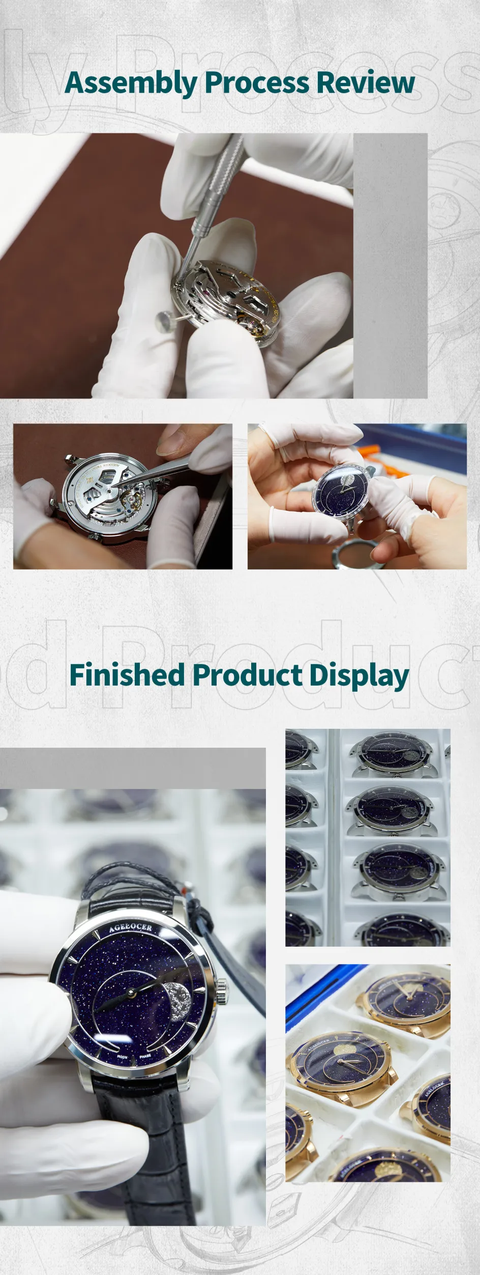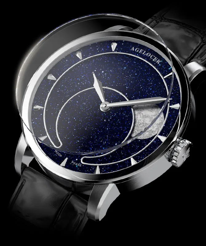 AGELOCER Men's Watch Blue Moon Phase Dress New Stainless Steel Automatic Mechanical Luxury Fashion WristWatch