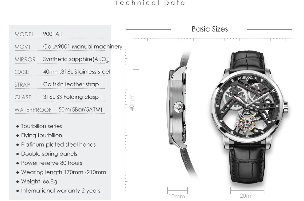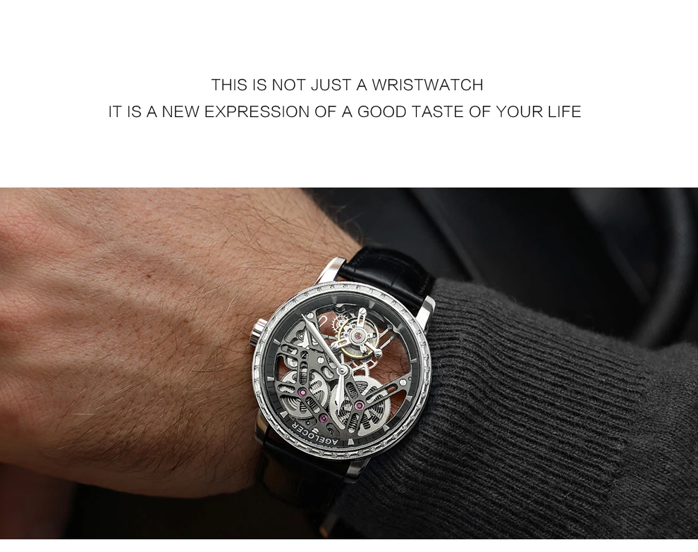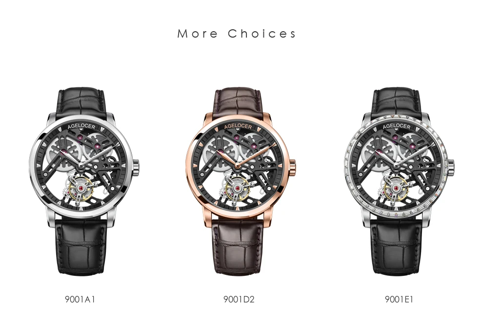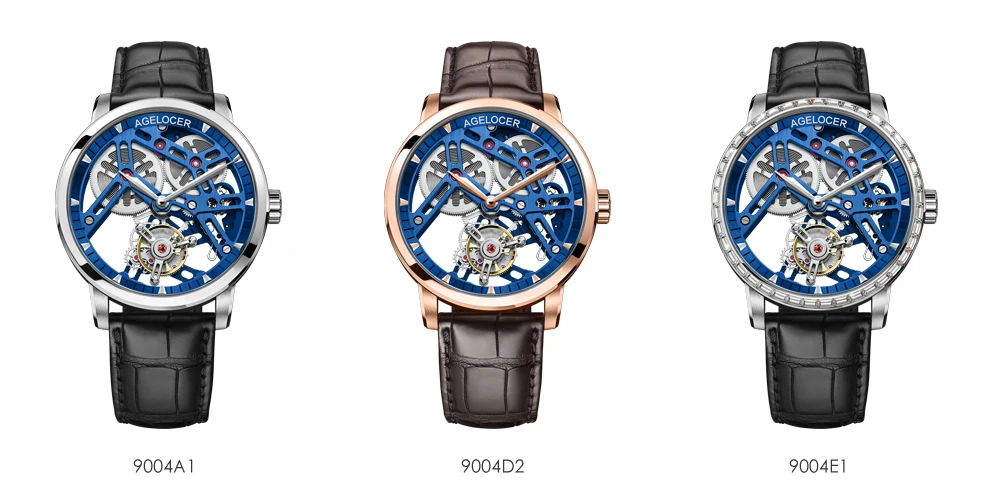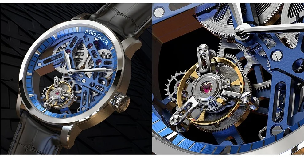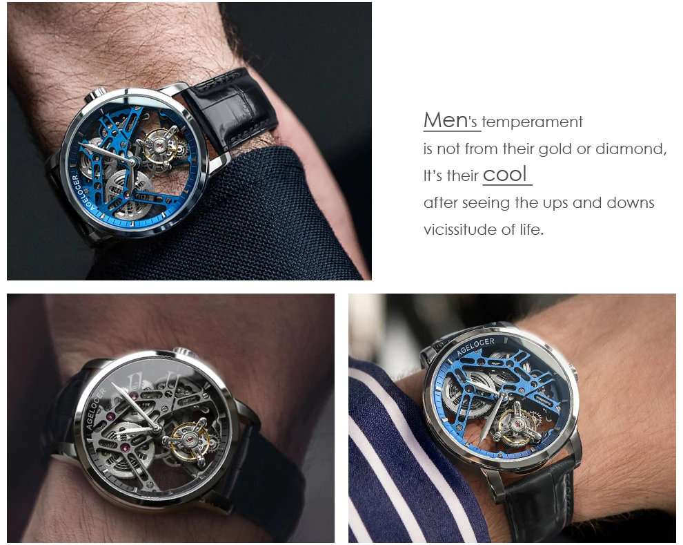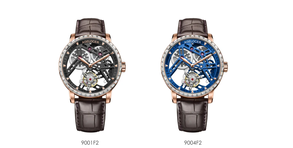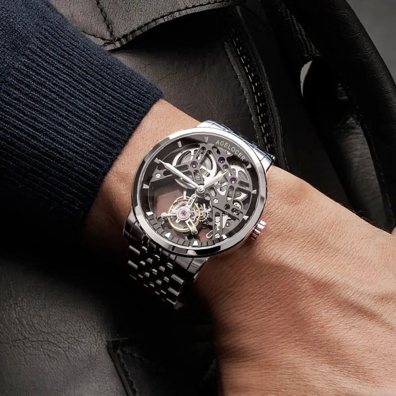 AGELOCER Original Tourbillon Watch Fashion Men's Business Formal Luxury Skeleton Manual Mechanical Watch Birthday Gift for Men