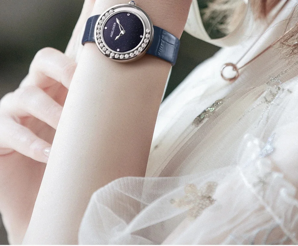 AGELOCER Women's Watches Fashion Luxury Top Brand Diamond Black Women Wristwatch Sapphire Casual Ladies Quartz Watch Clock New