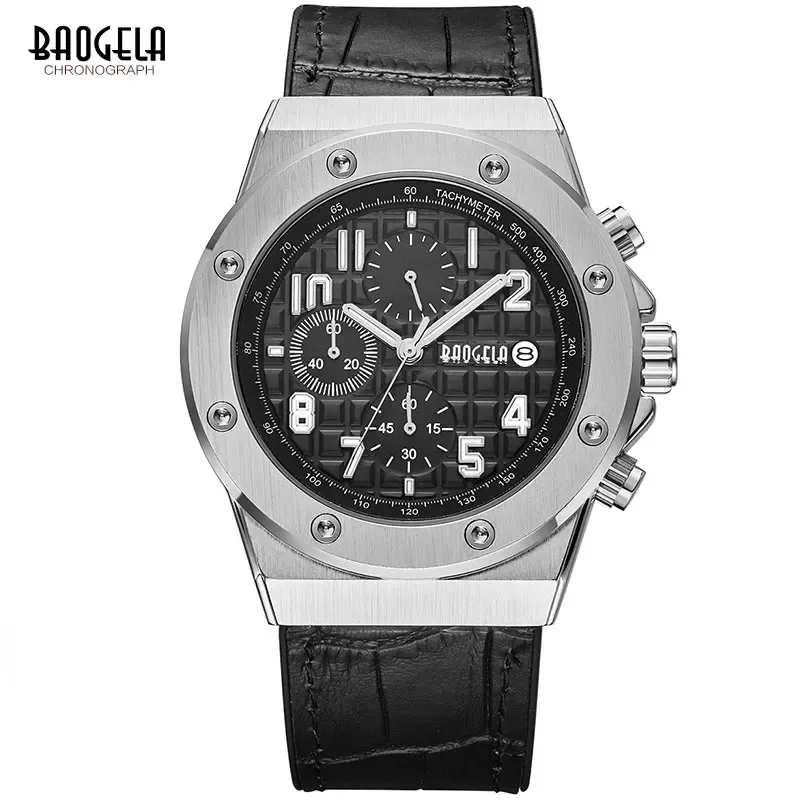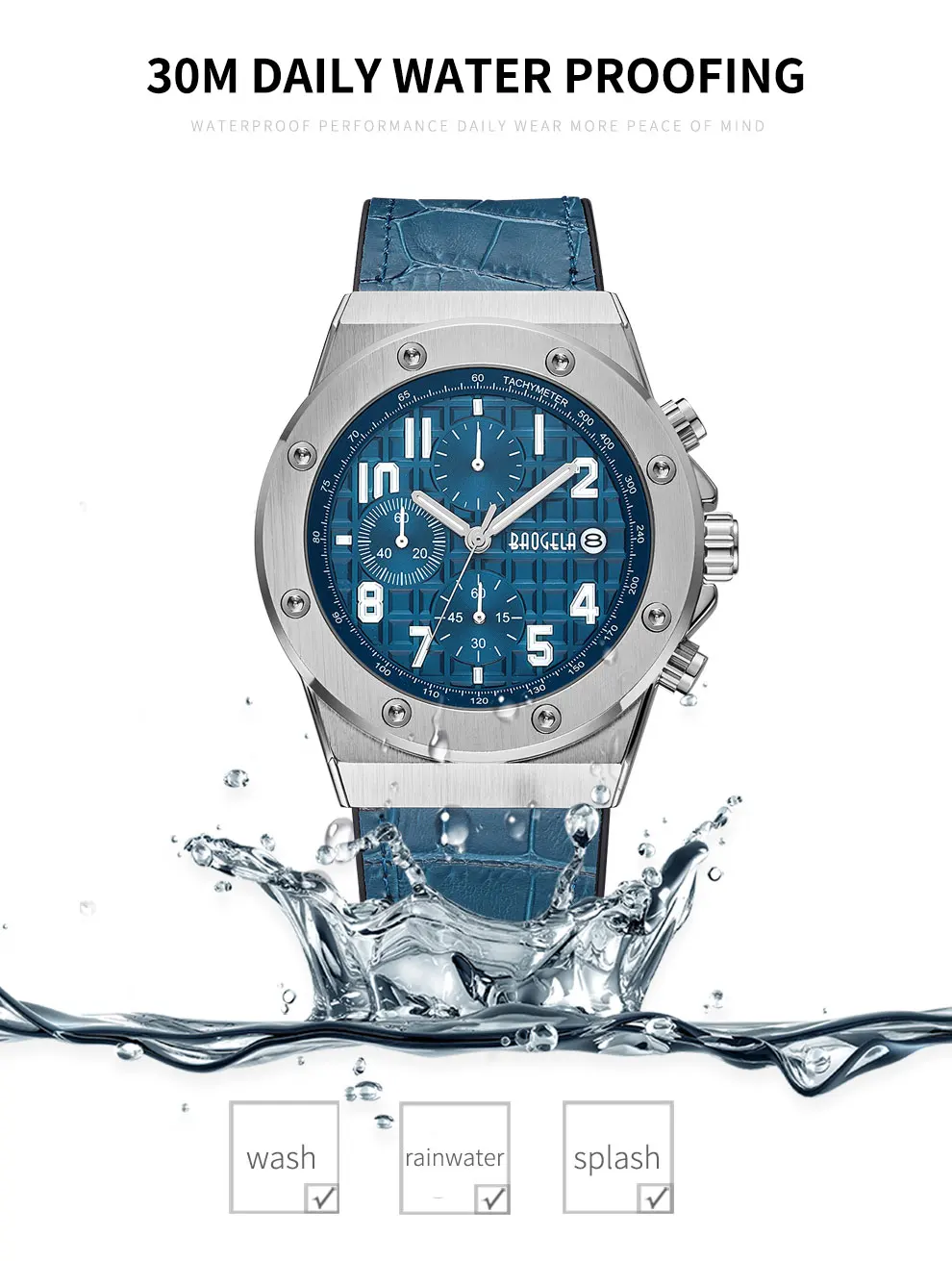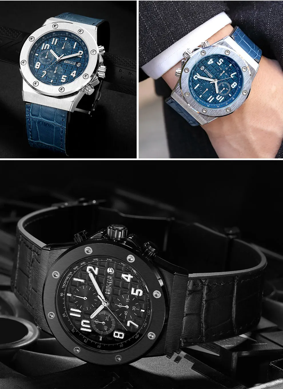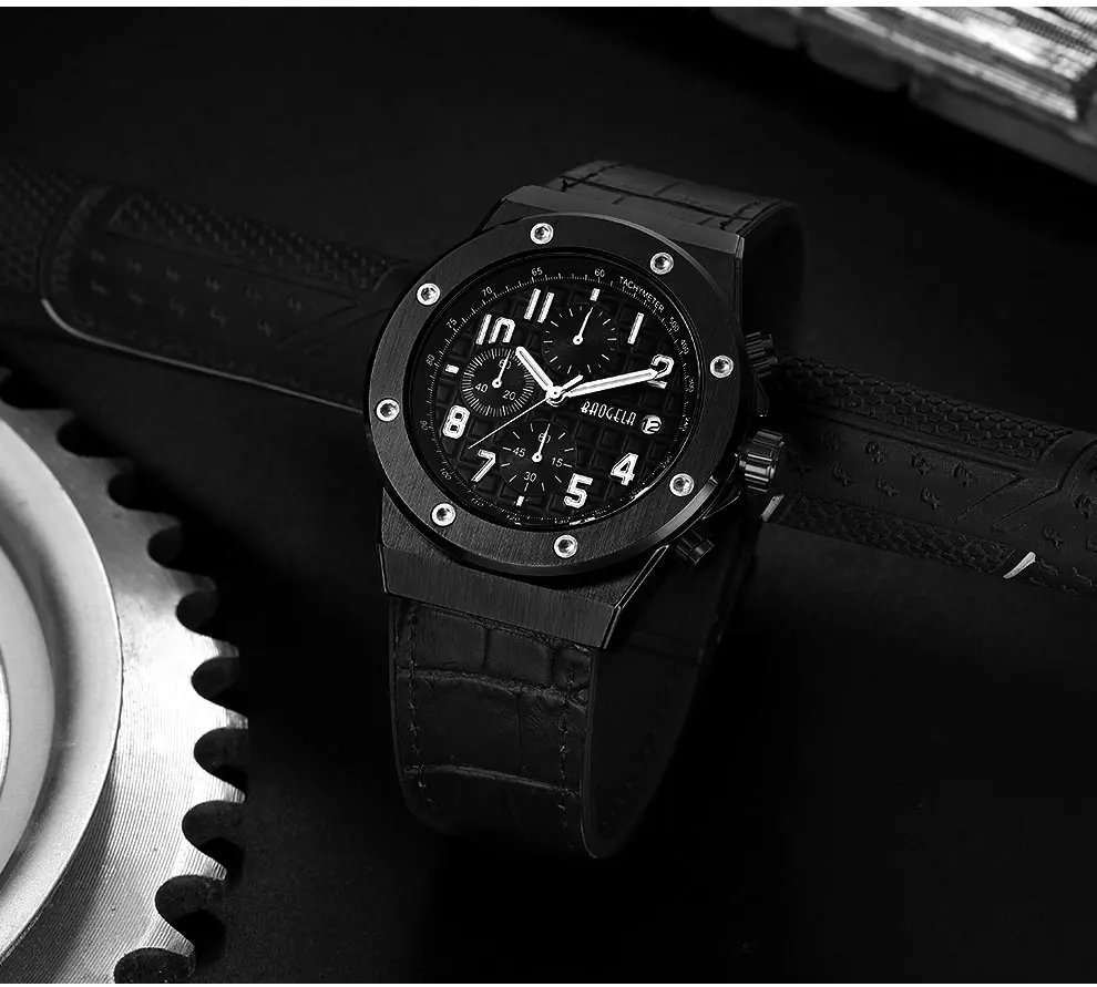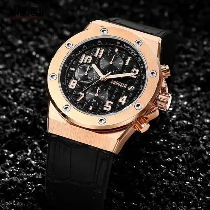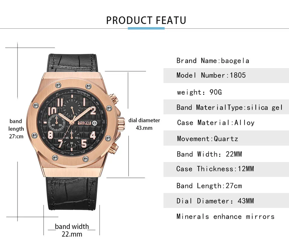 BAOGELA Men's Chronograph Quartz Watches 2019 New Waterproof Sports Casual Wrist Watch Man Leather Strap Clock 1805 Rose black