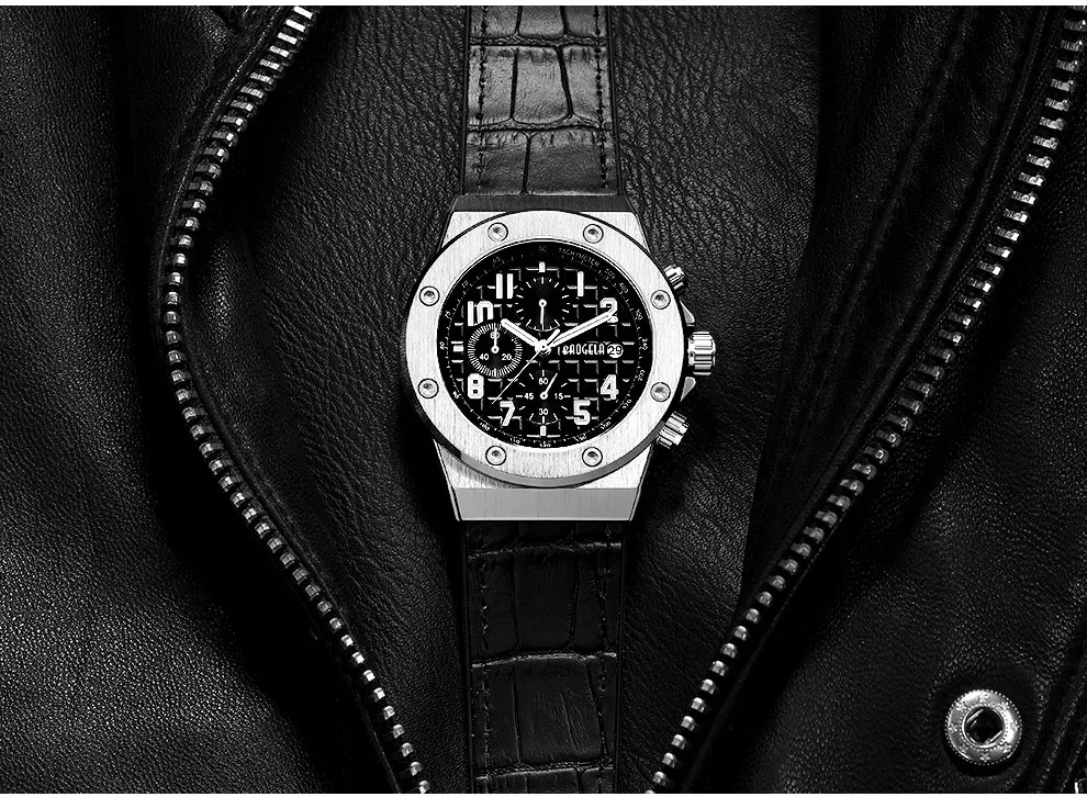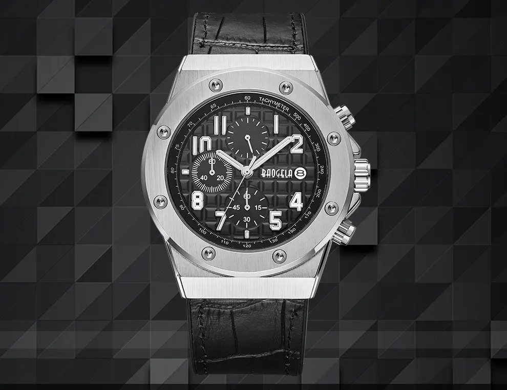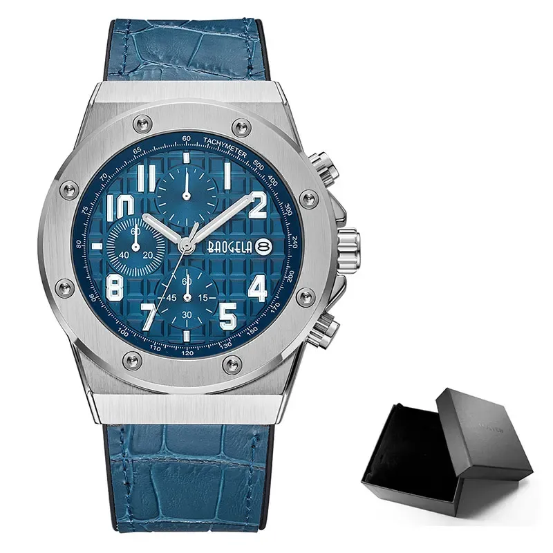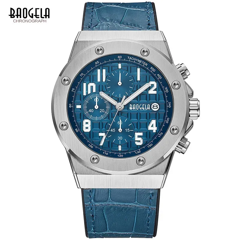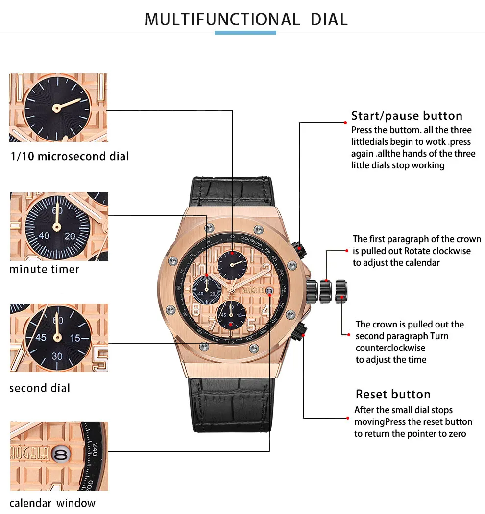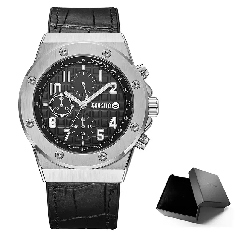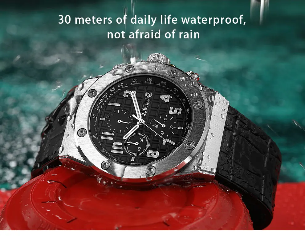 BAOGELA Men's Chronograph Quartz Watches 2019 New Waterproof Sports Casual Wrist Watch Man Leather Strap Clock 1805 Rose black