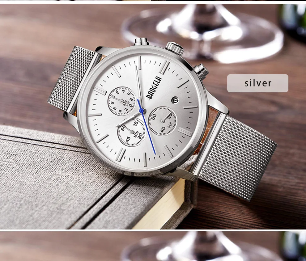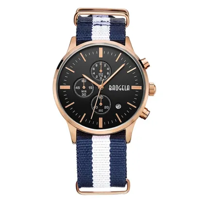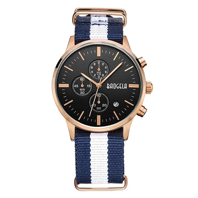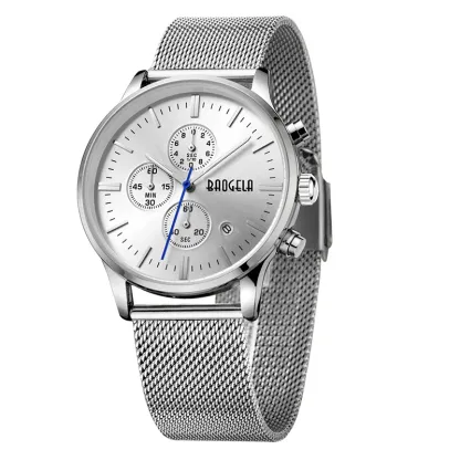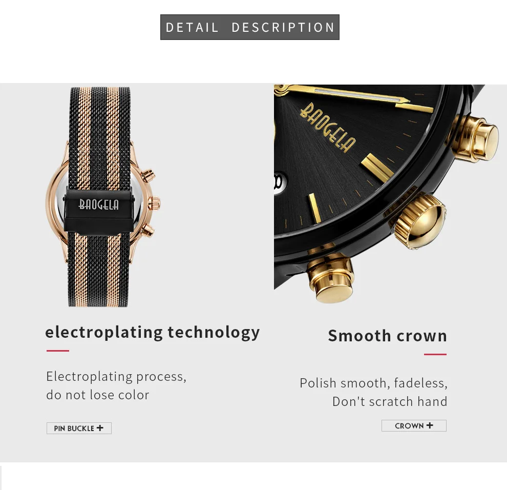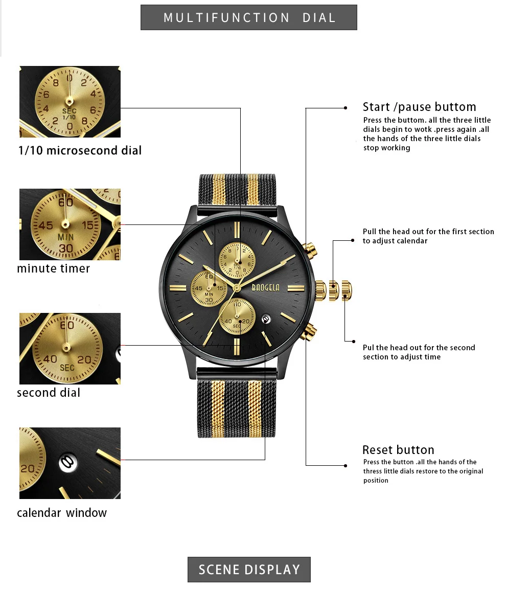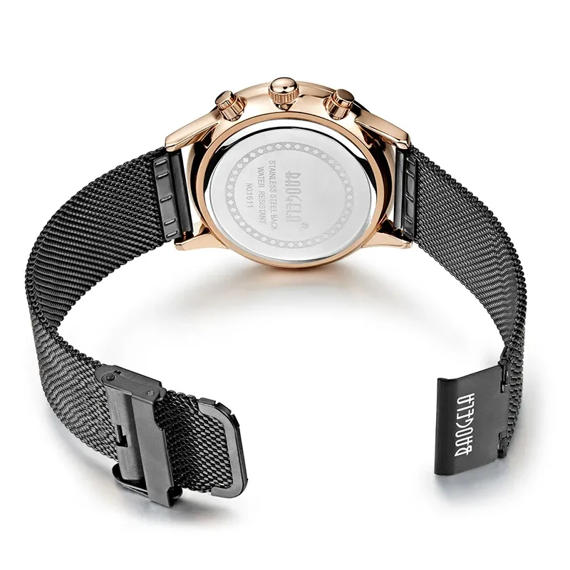 BAOGELA Men's Watch Waterproof Analog Quartz Wrist Watches Gold With Black Stainless Steel Mesh Band, Chronograph Date 1611