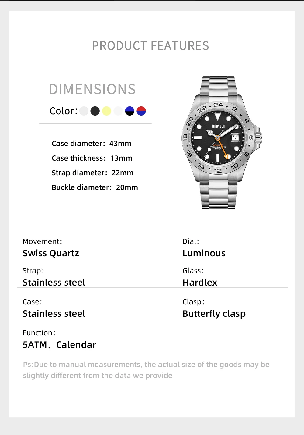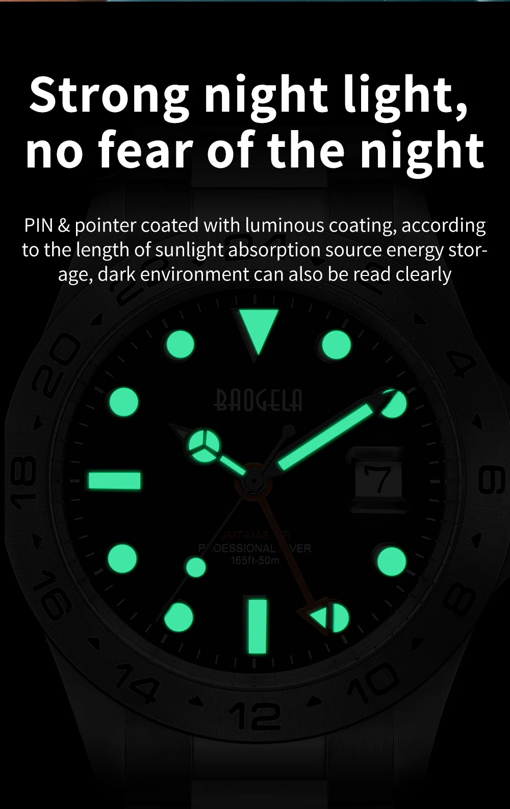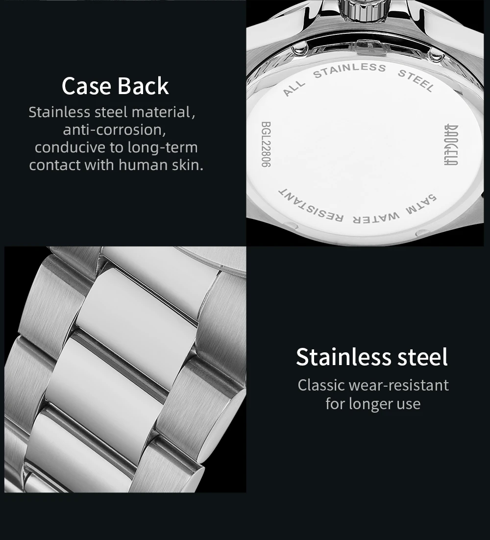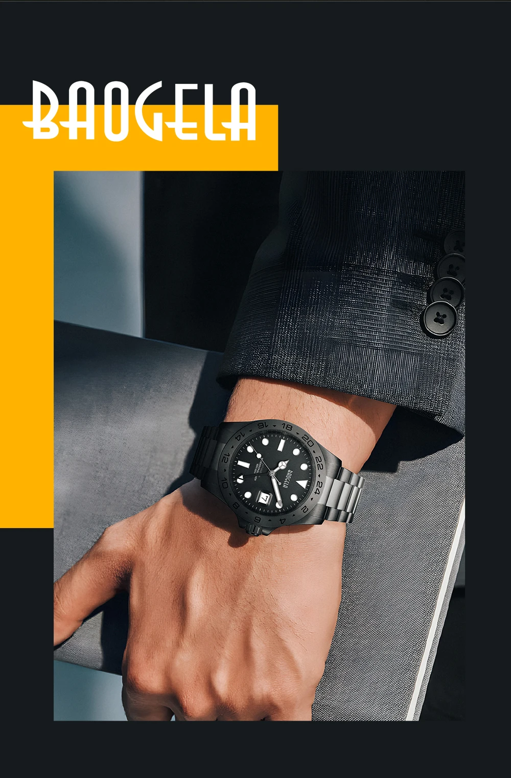 Baogela men luxury watch 304 stainless steel Swiss movement luminous dial 50bar ashion business Relogio Masculino wristwatch