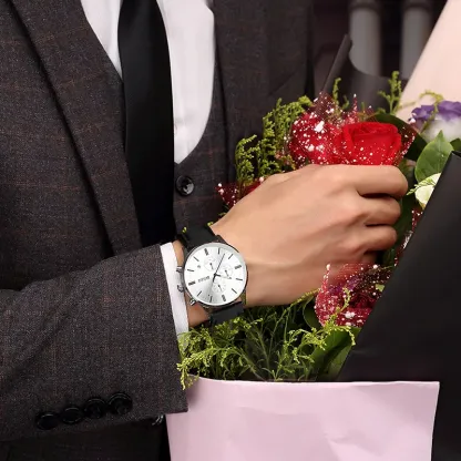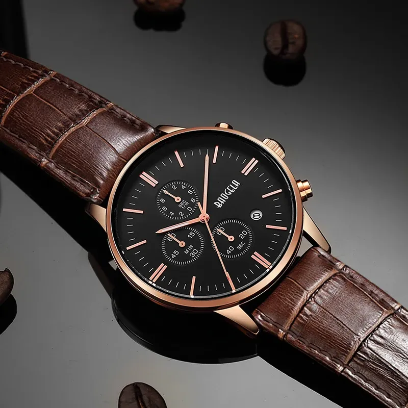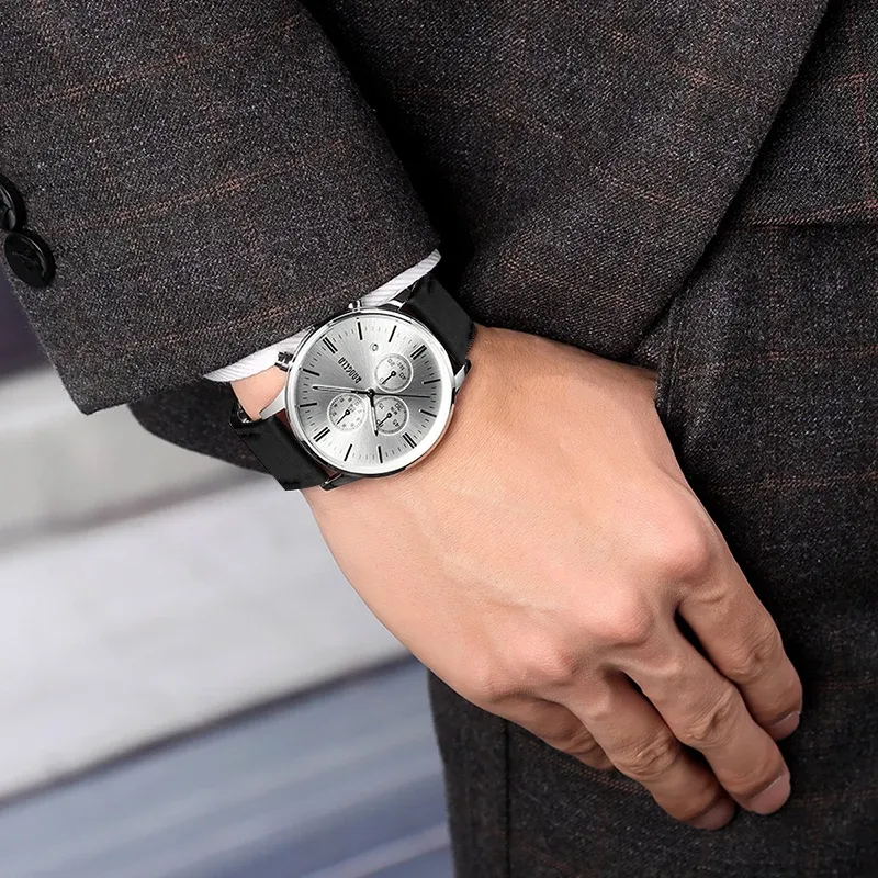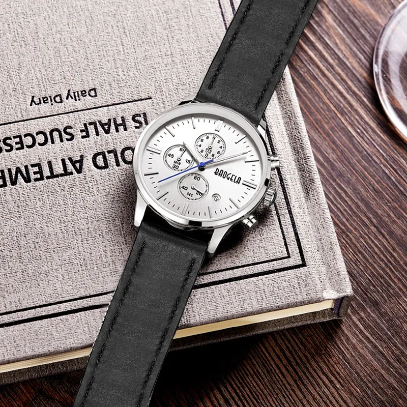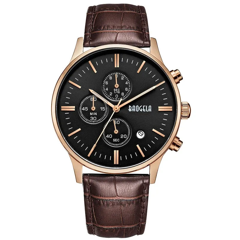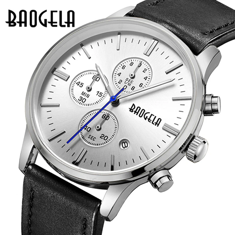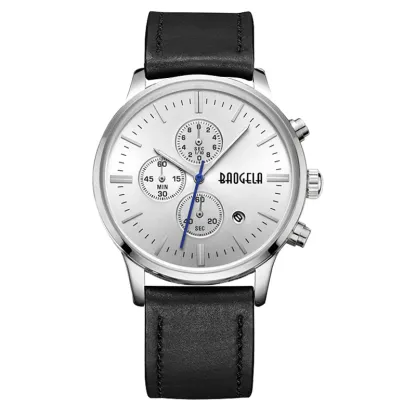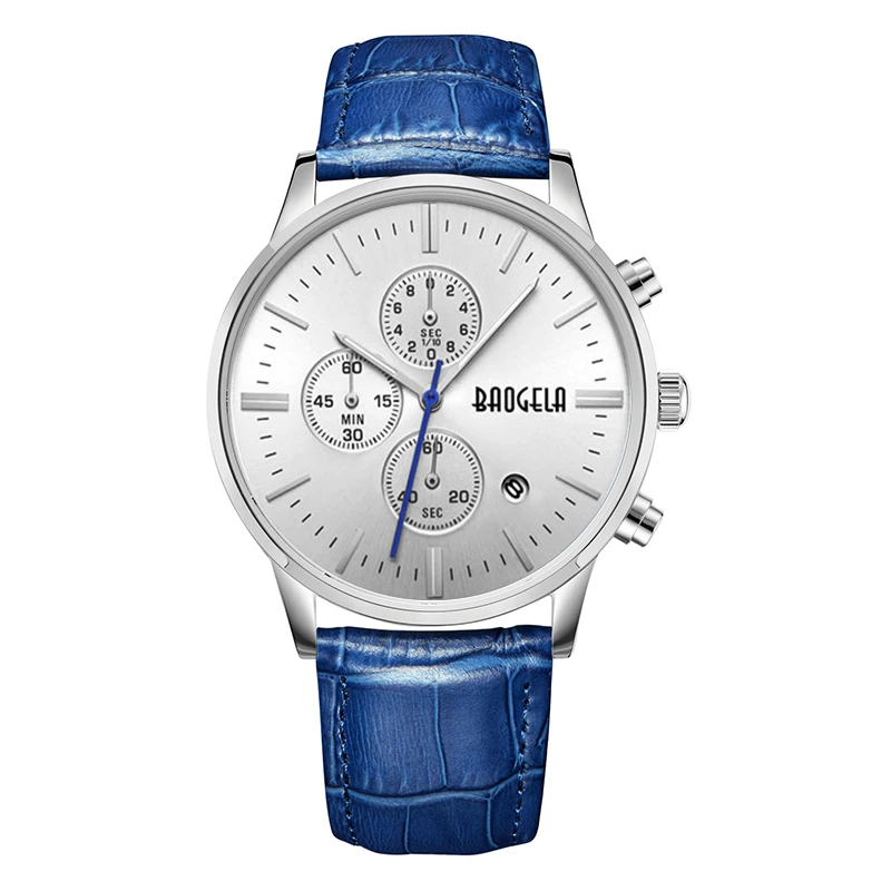 Baogela minimalist watches mens 2022 luxury design watch for men new leather band quartz calendar business casual waterproof