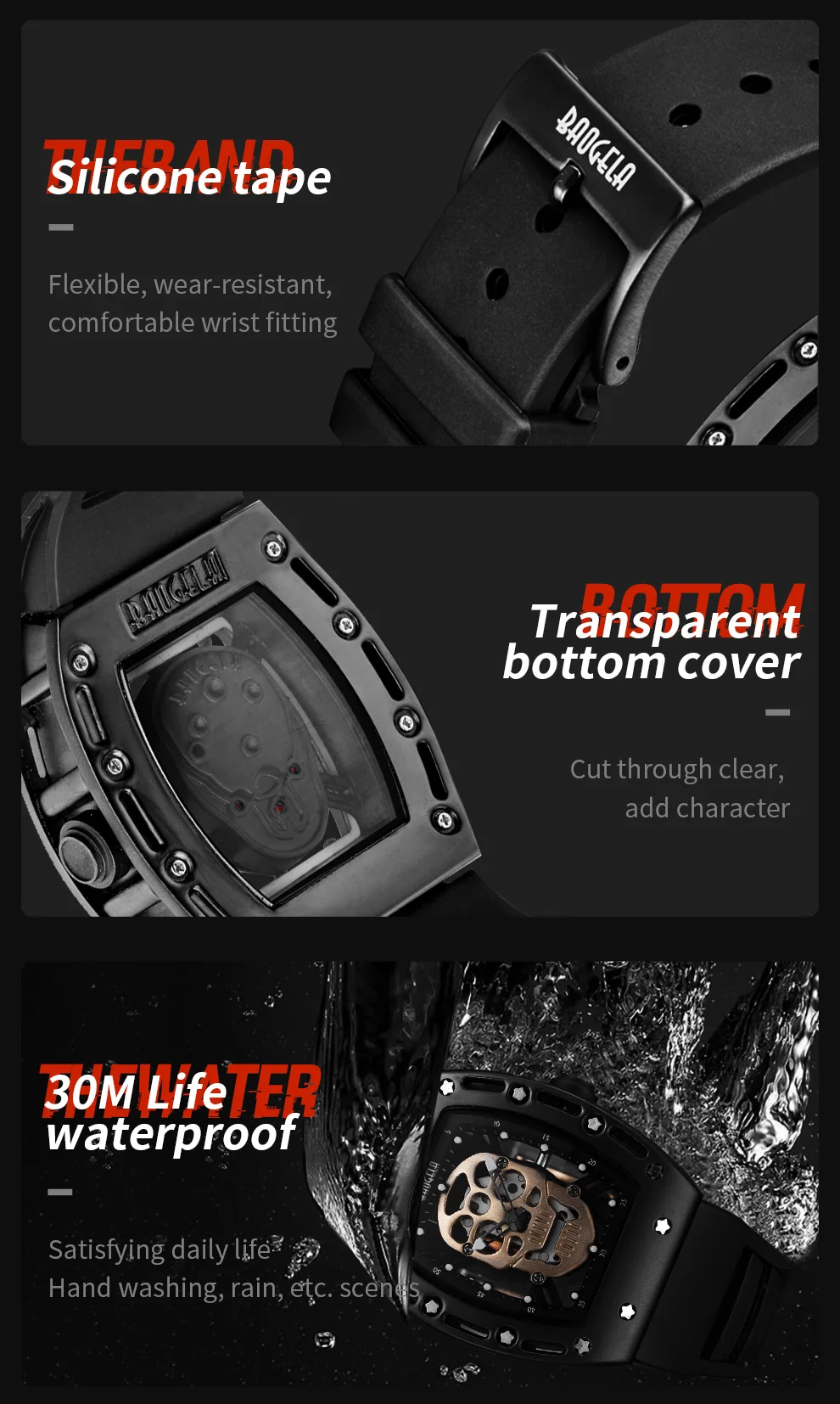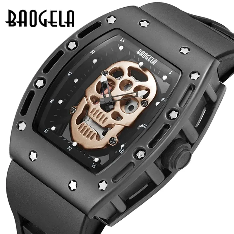 BAOGELA New Arrival Style Pirate Skull Quartz Men Watches Military Silicone Brand Mens Sports Watch Waterproof Relogio Masculino