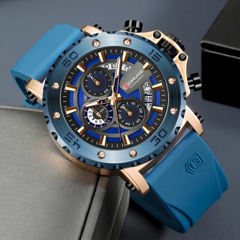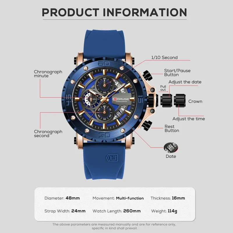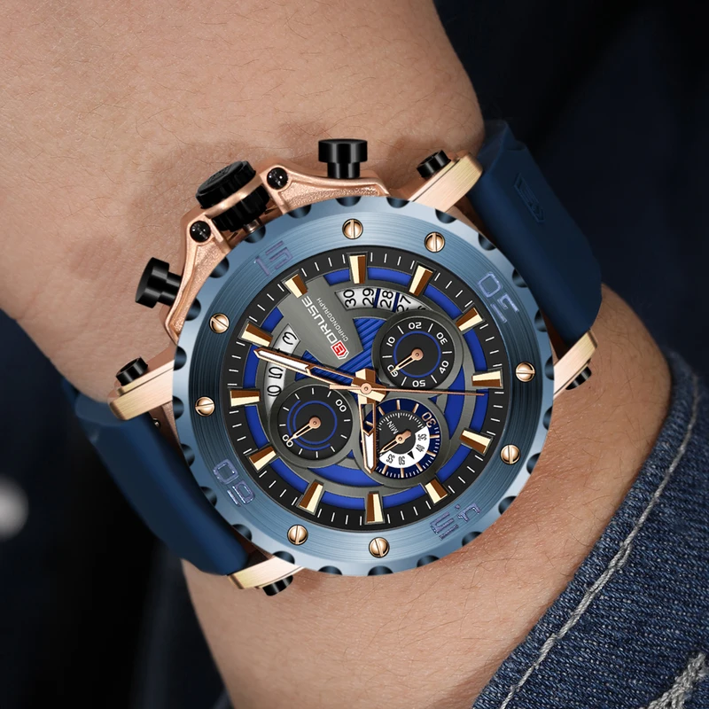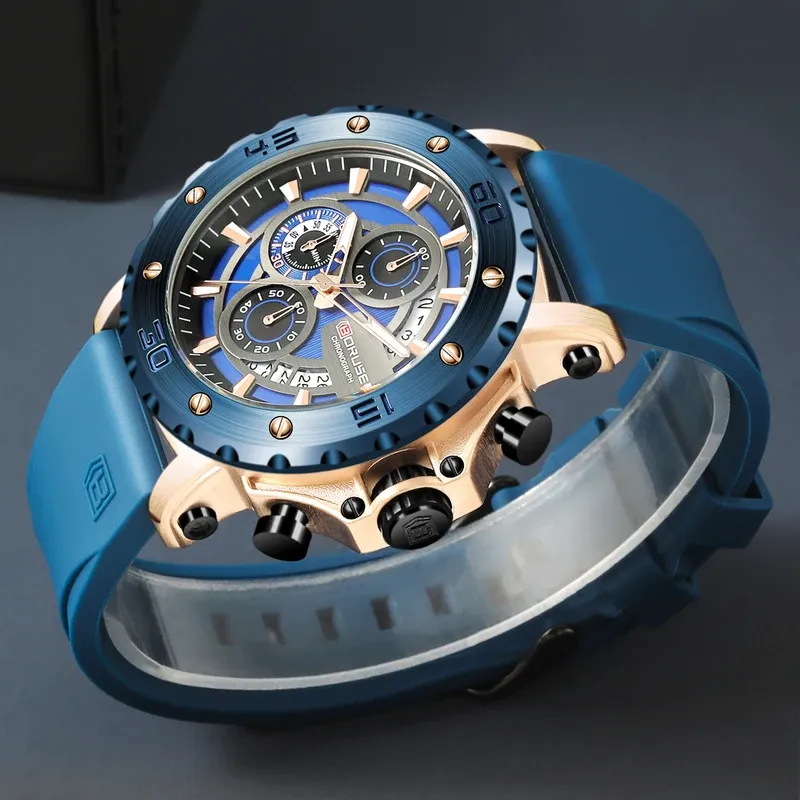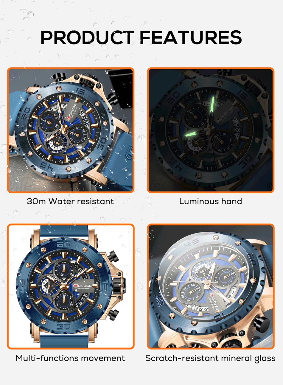 BORUSE Fashion Men Quartz Watches Top Brand Luxury Automatic Date Wristwatch for Men Waterproof Sport Chronograph Luminous Clock