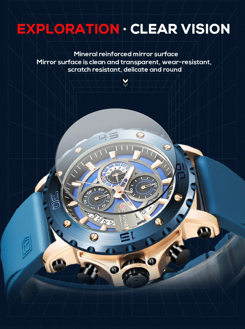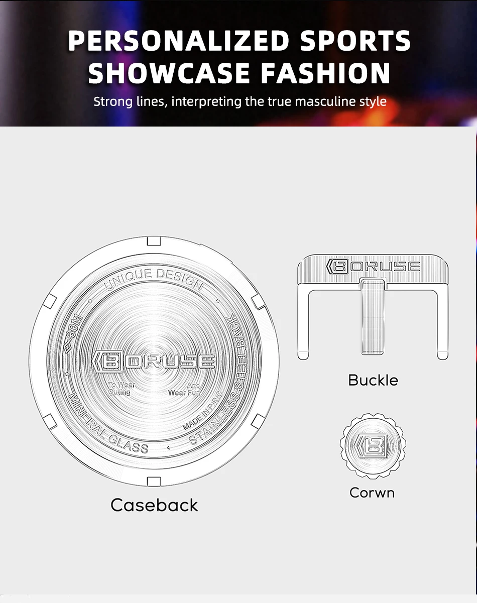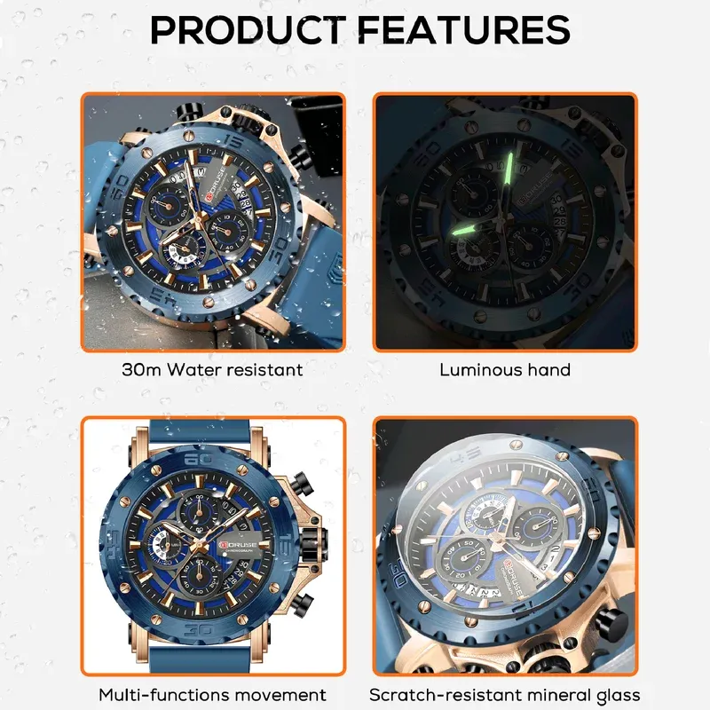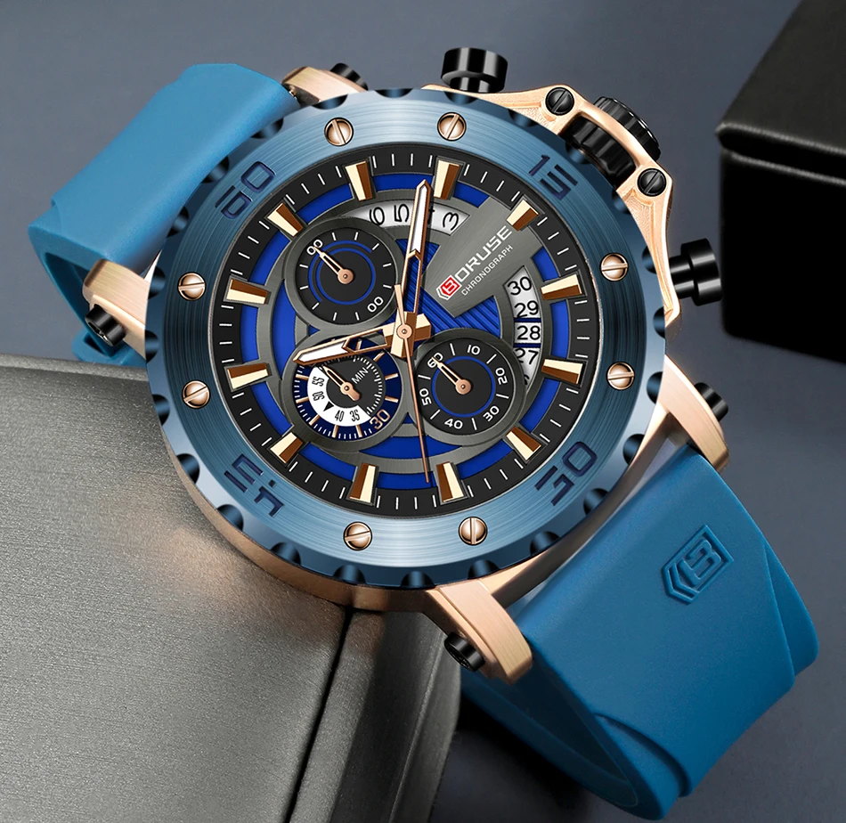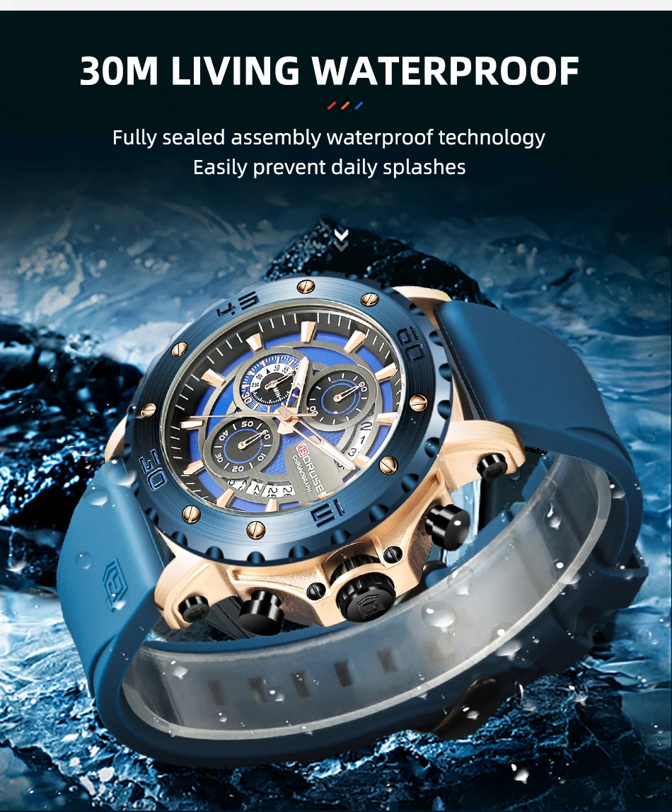 BORUSE Fashion Men Quartz Watches Top Brand Luxury Automatic Date Wristwatch for Men Waterproof Sport Chronograph Luminous Clock